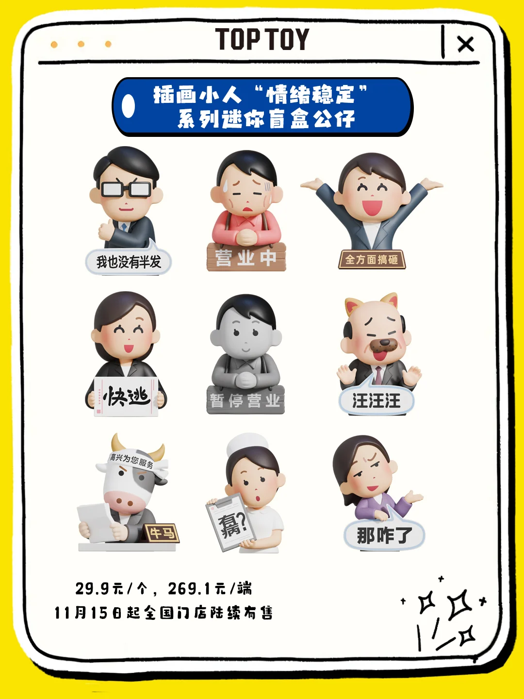 产品名称:插画小人“情绪稳定”系列迷你盲盒公仔