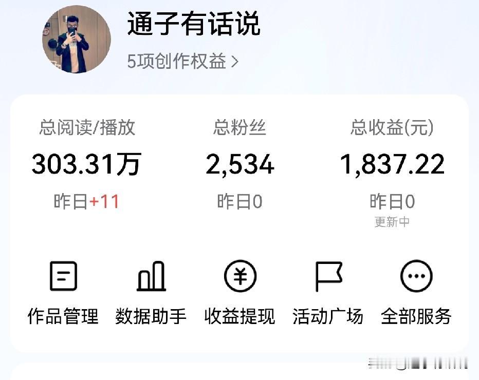写头条到底能不能赚到钱?这是很多人最关心的问题! 答案显而易见!写头条码字的确是可以赚到钱的,只不过赚的都是辛苦钱,背后付出的精力和时间是你无法想象的! 如果你是下了决心想在这上面赚到大钱!可以去多看看那些排名靠前的头条大V:卢克文工作室、九边Pro为代表,他们的文笔功底深厚,选题以时政新闻,国际形势分析为主! 这类的题材读者广泛,文章有深度,阅读量和展现量都特别高,粉丝粘性很高,多半是铁杆粉丝,哪怕是第一次阅读的新人,都会忍不住点个关注! 如果是想赚点工资,收入,就跟平时上班一样,每个月挣个5-8000的水平,那你可以参考:素老三、望东庭、杯水明月、李越峰等! 他们都算是头条力捧的代表,坚持日更,不管收益高还是低,始终相信坚持日更,身上都有一种打不死的小强精神! 他们的文章内容,要么是社会热点分析,要么是家长里短,要么是长篇小说!这种受众群体广泛,贴近生活,打发时间的同时,还能跟家里人讨论讨论,八卦一下! 如果是打打酱油,头条就跟发朋友圈一样的!那就休闲娱乐一下即可,不要想着能苦多少钱,偶尔曝了一篇,能挣点菜钱,花费,已经不错了! 我23年在头条整整日更了一年,尝试了一下,结果不尽如人意!钱也没挣到多少,阅读量和展现量就跟放烟花一样,隔一段时间爆火那么一条两条,能苦点饭钱! 假如说,只要头条一直存在,那么,如果从30岁更新到60岁,整整30年的时间,按照每天日更1-2篇内容,一年就是700篇,10年就是7000篇,三十年就是70000篇,内容都垂直,不乱发,相信苦点个10年的养老钱应该不成问题吧! 你们觉得呢?