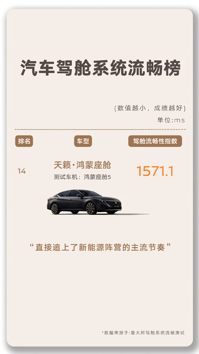 谁说燃油车难与智能沾边?天籁·鸿蒙座舱强势杀入新势力燃油车跑分排行榜!鲁大师实测