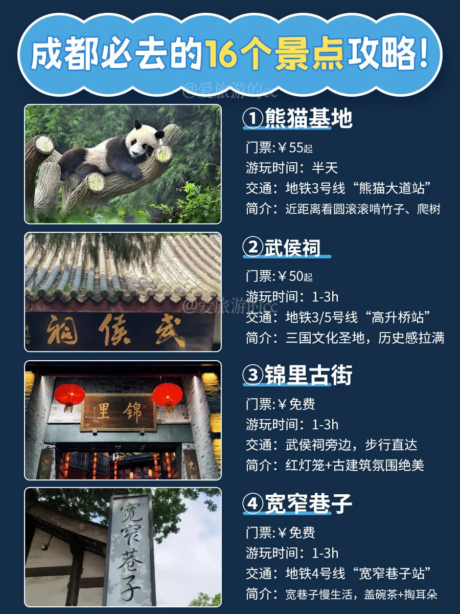 3️⃣ 锦里/武侯祠:文化气息浓,晚上逛吃超赞