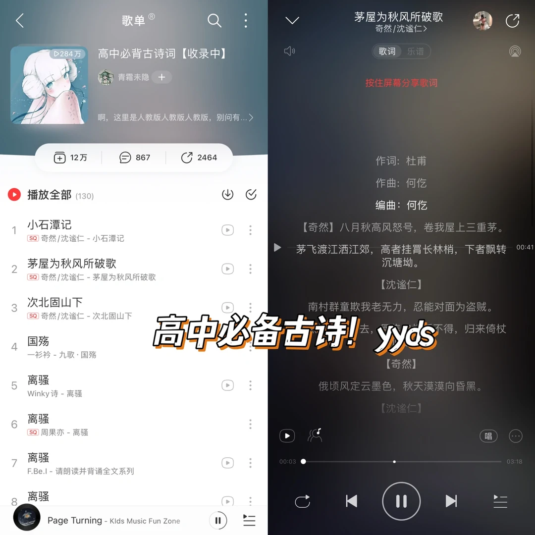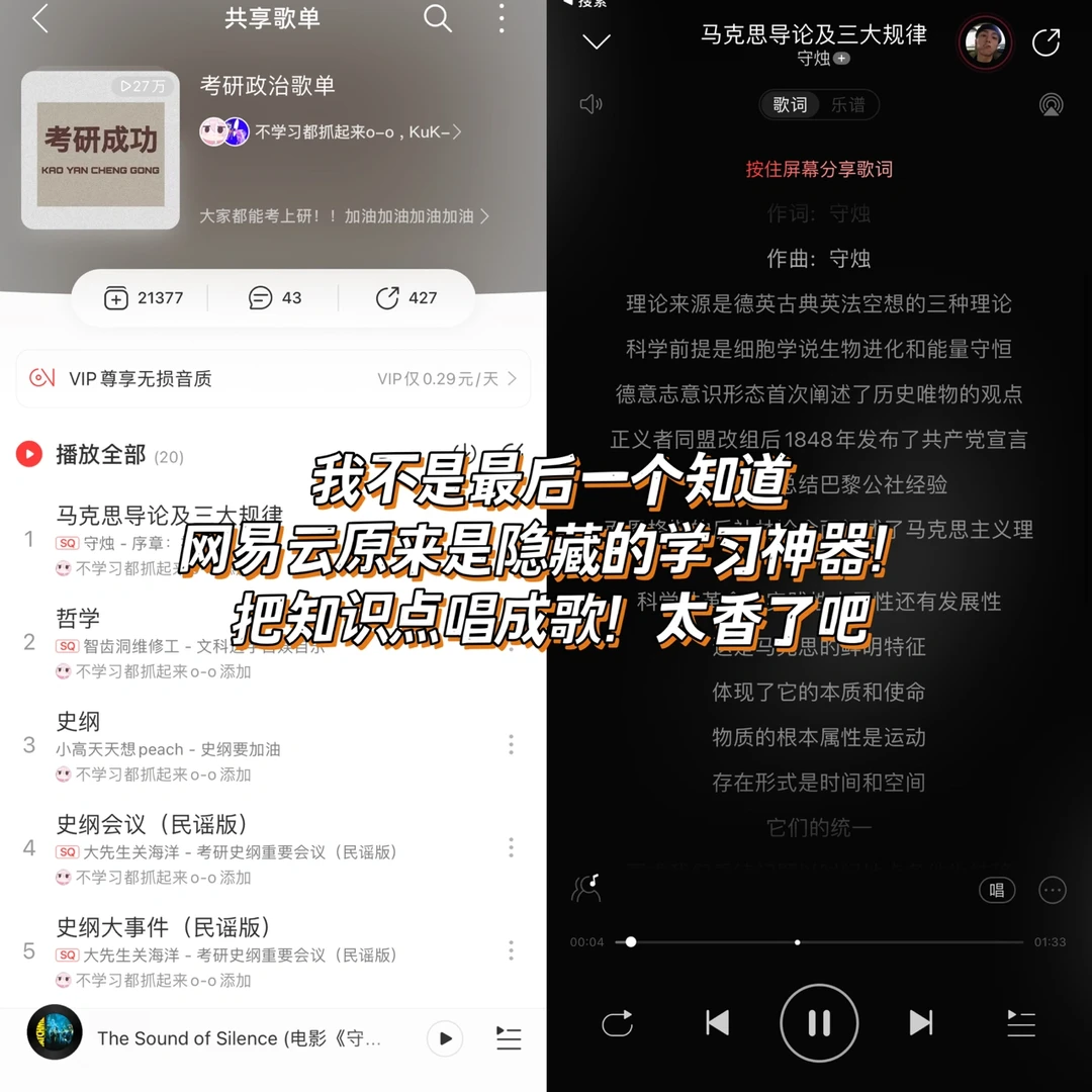 ❤️APP:网易云音乐 ❤️设备:🍎安卓都🉑️ 🌟学习内卷之王,连听歌也可以学习! 🌟直接🔍歌单,就有超多科目可以学习! 🌟语文、英语、物理、化学!!都有,太香了 🌟姐妹们快冲!学霸之路就在前方
