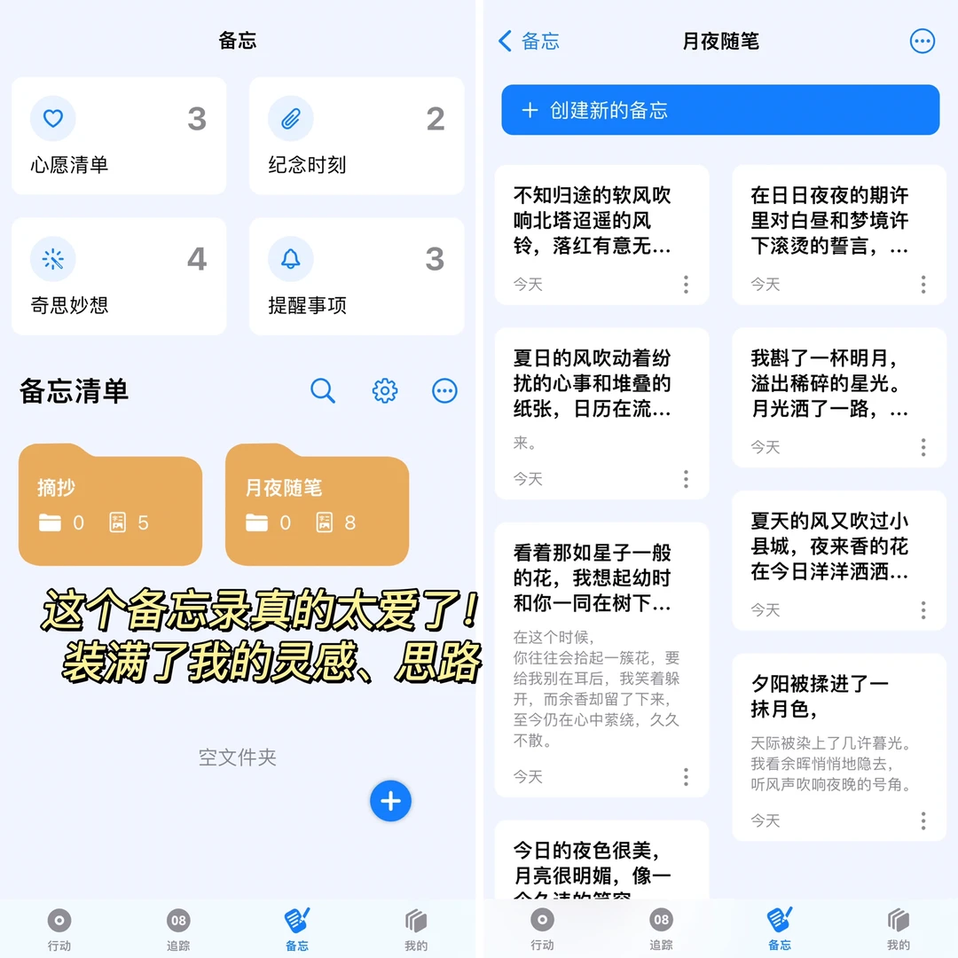 7⃣️最喜欢里边的备忘录,可以分类记录心愿、重要纪念日、还有各种奇思妙想,让你的灵感得以记载![吃瓜R]