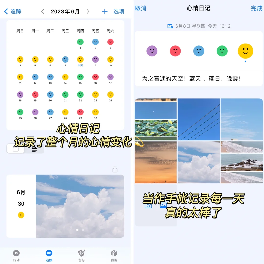 5⃣️心情日记,可以把每天的值得回忆的事情记录下来,像手帐一样,超有意义[自拍R]