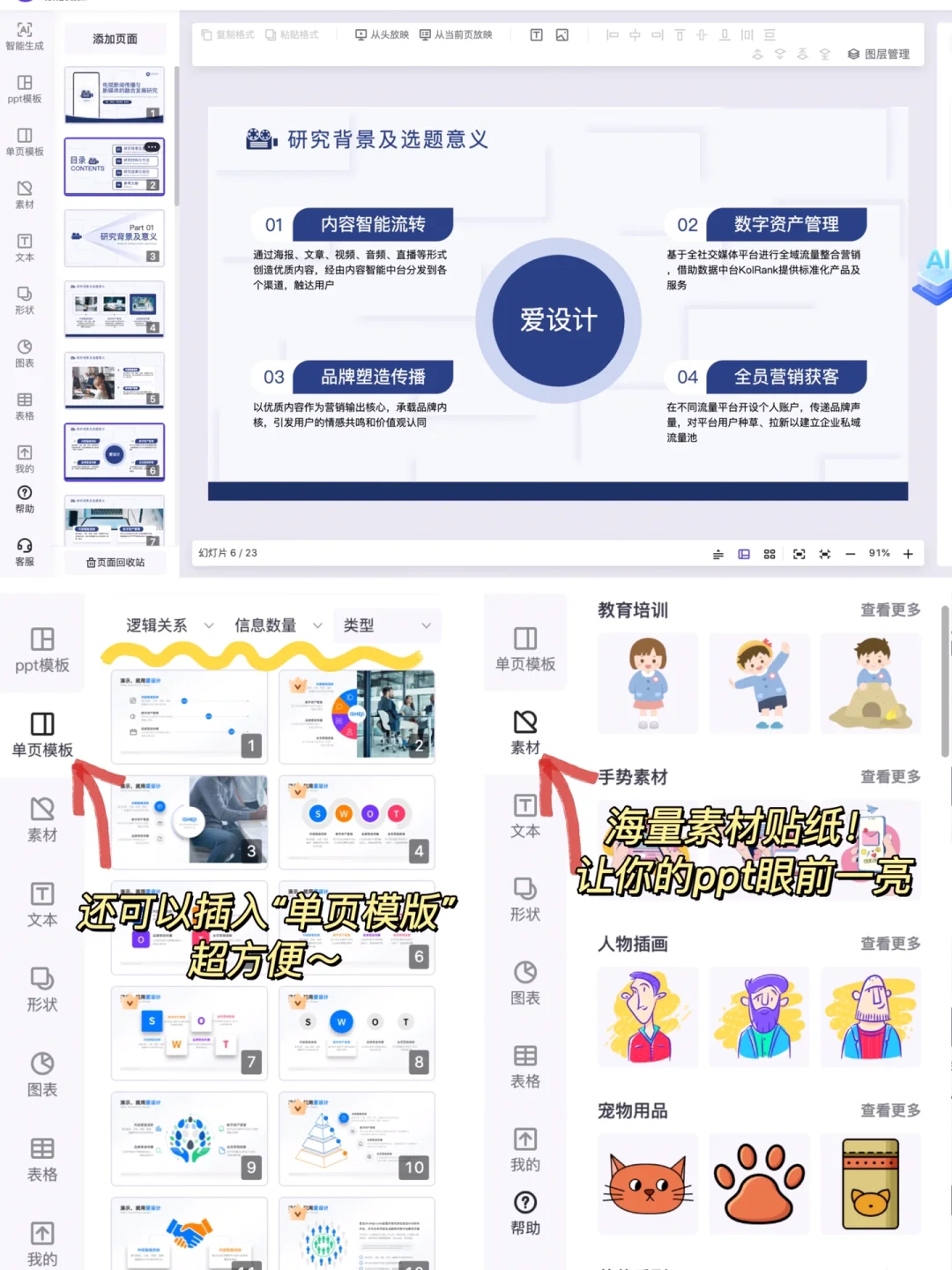 [紫色心形R]不想AI生成的,里边也有海量ppt模板!各种风格全都有!素材、贴纸、表格、图表📈一应俱全,做ppt用一个软件就搞定了~