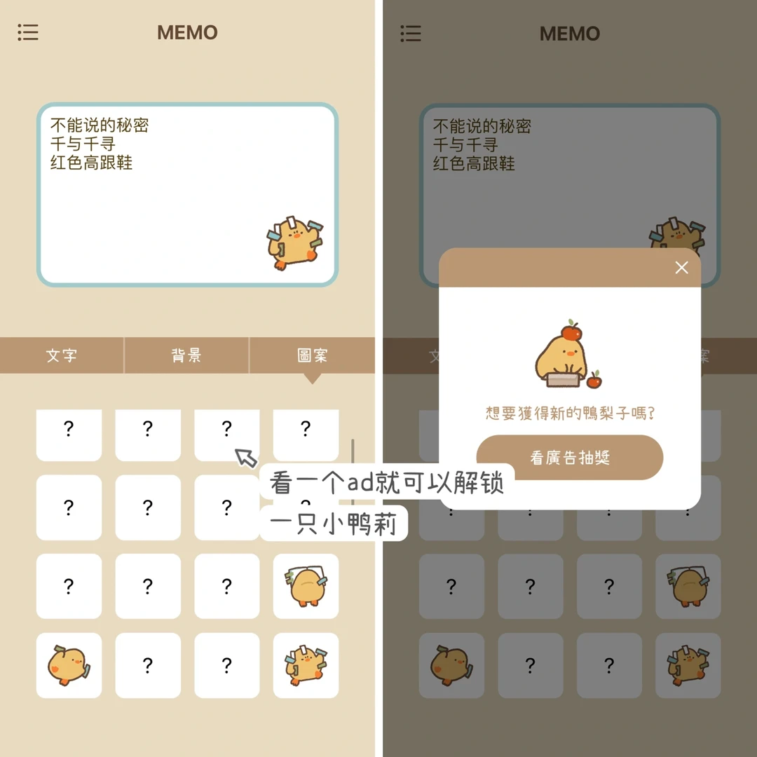 ❤️APP:Duck Memo ❤️设备:🍎 🌟一款超级可爱的鸭梨子便签软件 🌟可以添加到桌面! 🌟可自由更改背景和字体颜色 ❤️简简单单,可可爱爱的清单 ♥️让学习和生活更有条理,更有仪式感