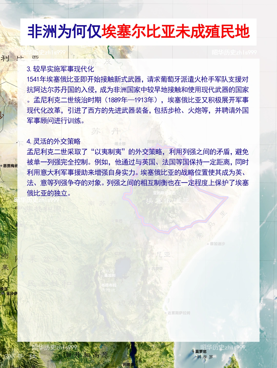 1889年,埃塞俄比亚皇帝约翰尼斯四世在与马赫迪军队的战斗中身亡,孟尼利克二世凭借其女儿与约翰尼斯四世儿子婚姻关系,宣布自己为埃塞俄比亚皇帝,随后率领军队统一全国、建都亚的斯亚贝巴,奠定现代埃塞俄比亚疆域。