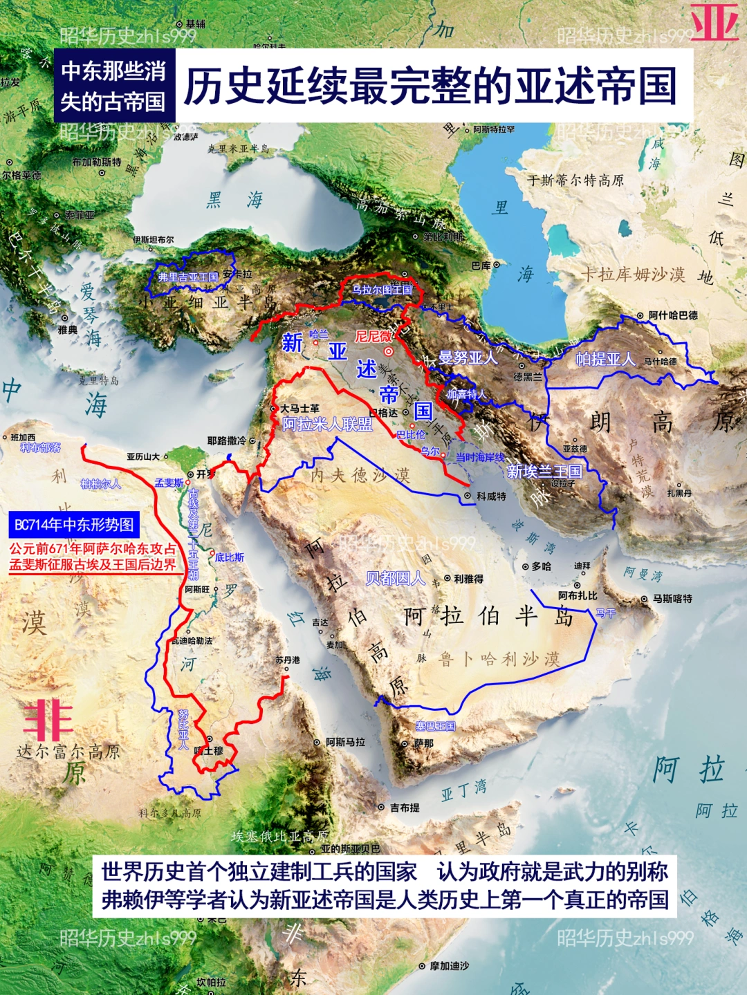 公元前1114年至前1076年,提格拉特帕拉沙尔一世登位,亚述国力逐渐增强再次崛起。