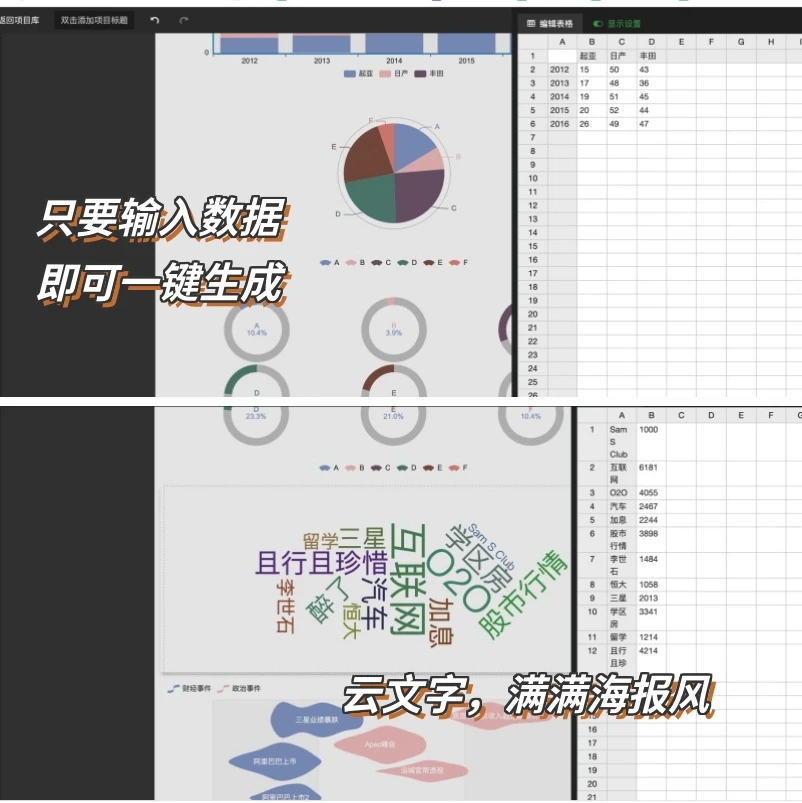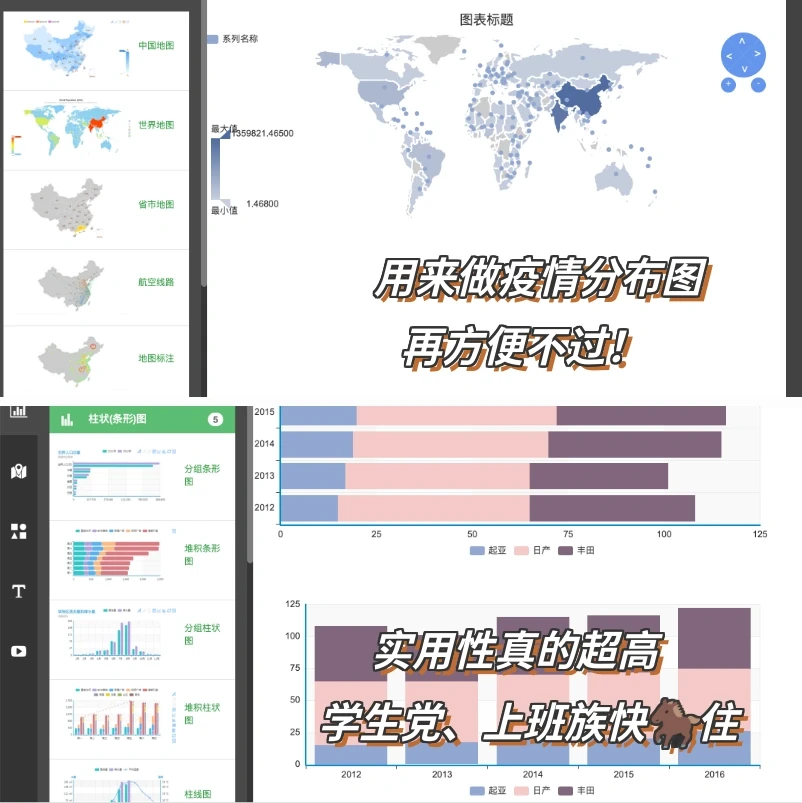 ❤️网站:文图,直接浏览器🔍 ❤️设备:📱、💻都🉑️ 🌟一款制作可视化数据ppt神器 🌟超多数据表格模板,直接输入数据,一键生成 🌟配色也超级好看!审美黑洞的快🐎住!