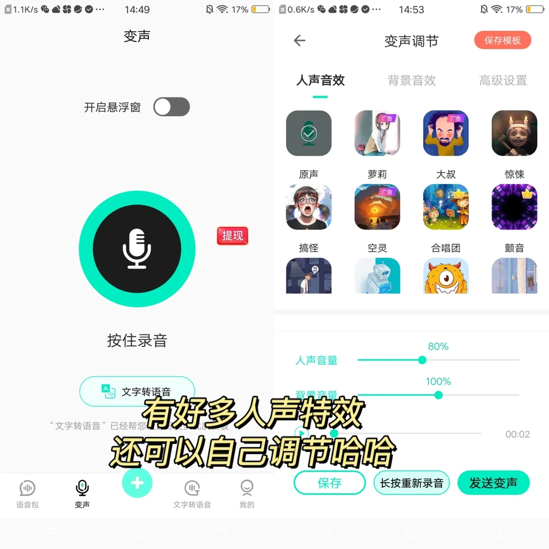 ❤️APP:变声器 ❤️设备:🍎、安卓都🉑️ - ❤️超级强大的变声器,我与声优博主就差这一步 🌟社恐和戏精玩游戏、聊天必备!再也不怕声音不好听 🌟支持实时录音变声,也可以文字转语音! 🌟操作简单! 🌟无聊的时候恶搞一下朋友增加你们的友谊~ ❤️每日一更,宝藏天天挖,记得❤️和🌟哦~