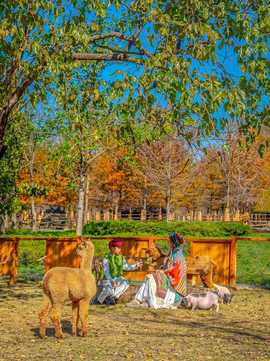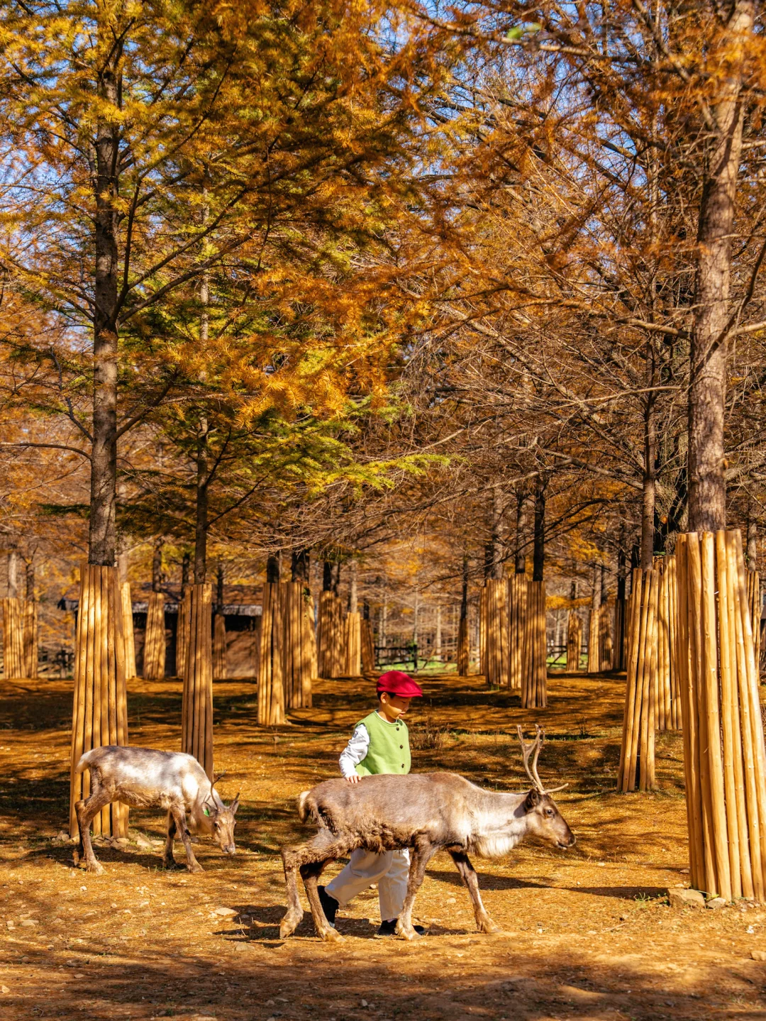 hi我是书签, 假期带着老黄小黄直奔🚘宜兴森之谷~ 这里真的好适合带小黄, 他一进门就开始撒丫子的跑没停下, 喂完这个再喂那个,玩得不亦乐乎。 小动物们的住所叶子都黄了, 特别是驯鹿部落美成了童话书里的样子~ 妈妈们可以在这里大拍特拍📷美照