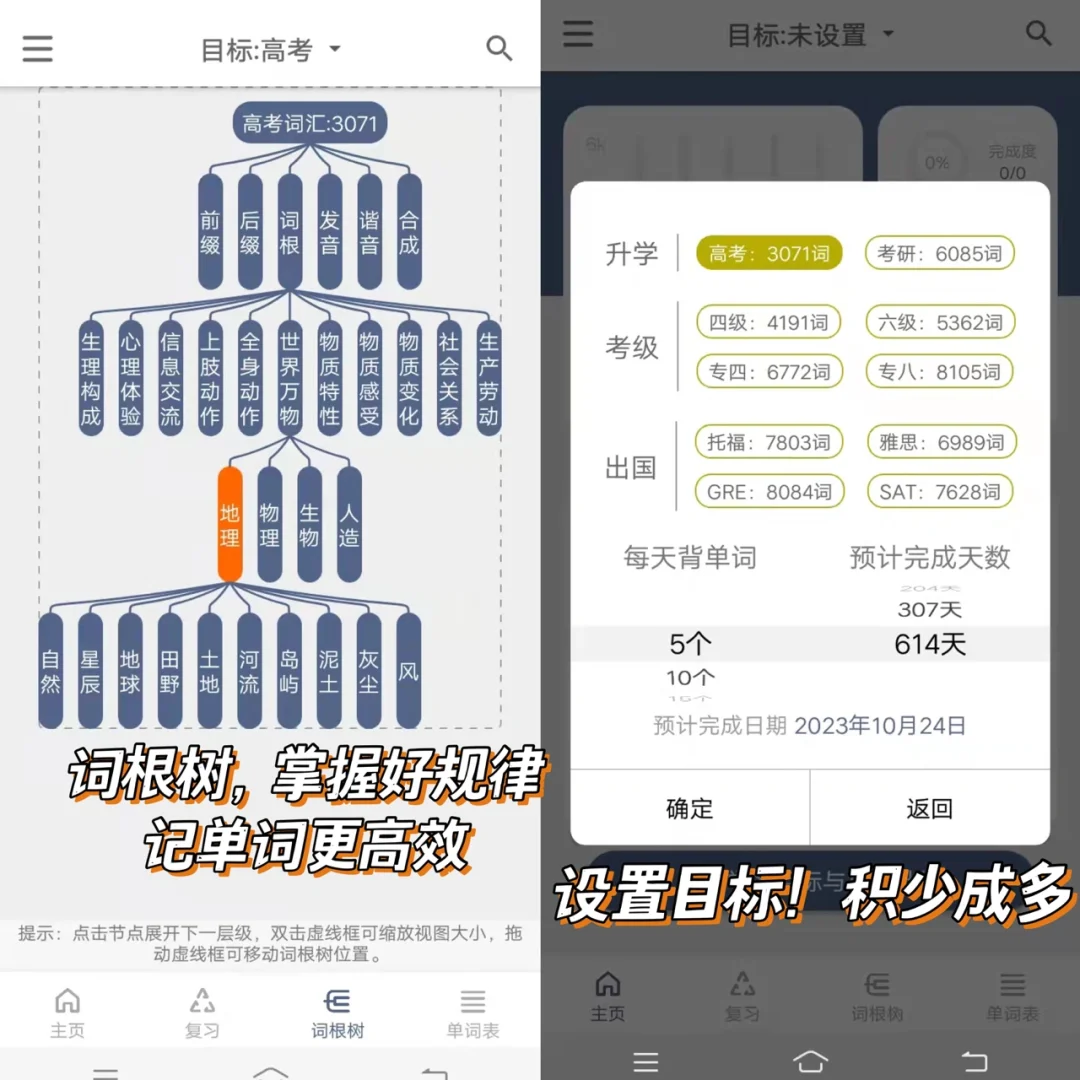 ❤️APP:词根单词 ❤️设备:🍎🈚️,安卓🉑️ 🌟一个背英语单词的神器! 🌟词意不多,只适合词汇量少的学生! 🌟只需要设置你的目标,本软件为根据算法制定你的复习方案! 🌟将考试的词根词缀,整理成思维导图的形式,让单词记忆更加高效 🌟最重要的是完全免费哦! - 每日一更,持续为你挖到更多宝藏~大家想要什么软件留言告诉我哦!