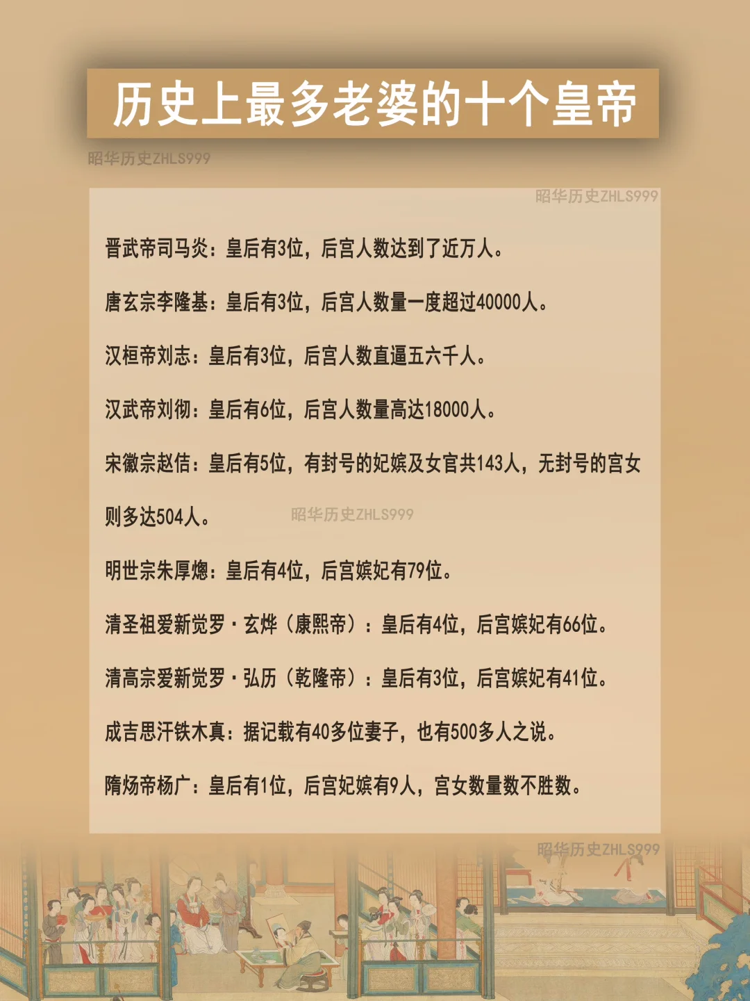 皇后有5位,有封号的妃嫔及女官共143人,无封号的宫女则多达504人。