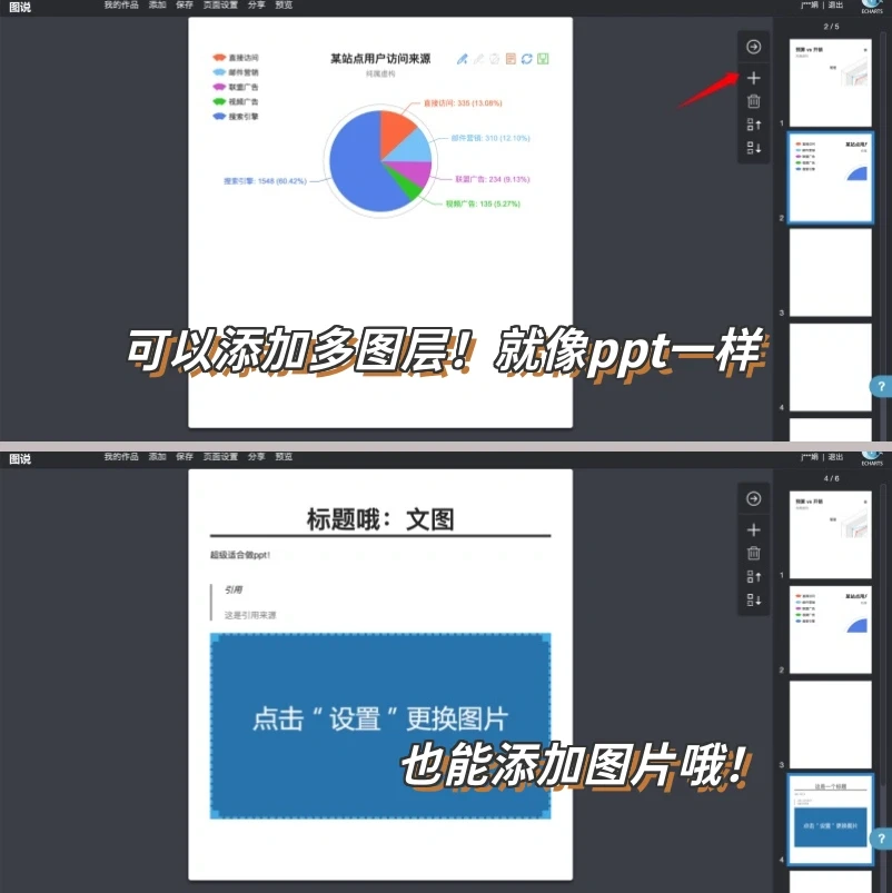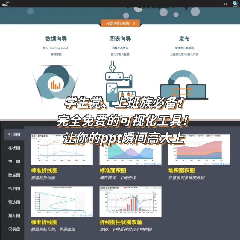 ❤️网站:图说 ❤️设备:📱,💻都🉑️,直接浏览器🔍! 🌟一款超强大的免费ppt可视化工具 🌟超多图表一键套用!直接修改数据即可! 🌟真的超级实用方便!
