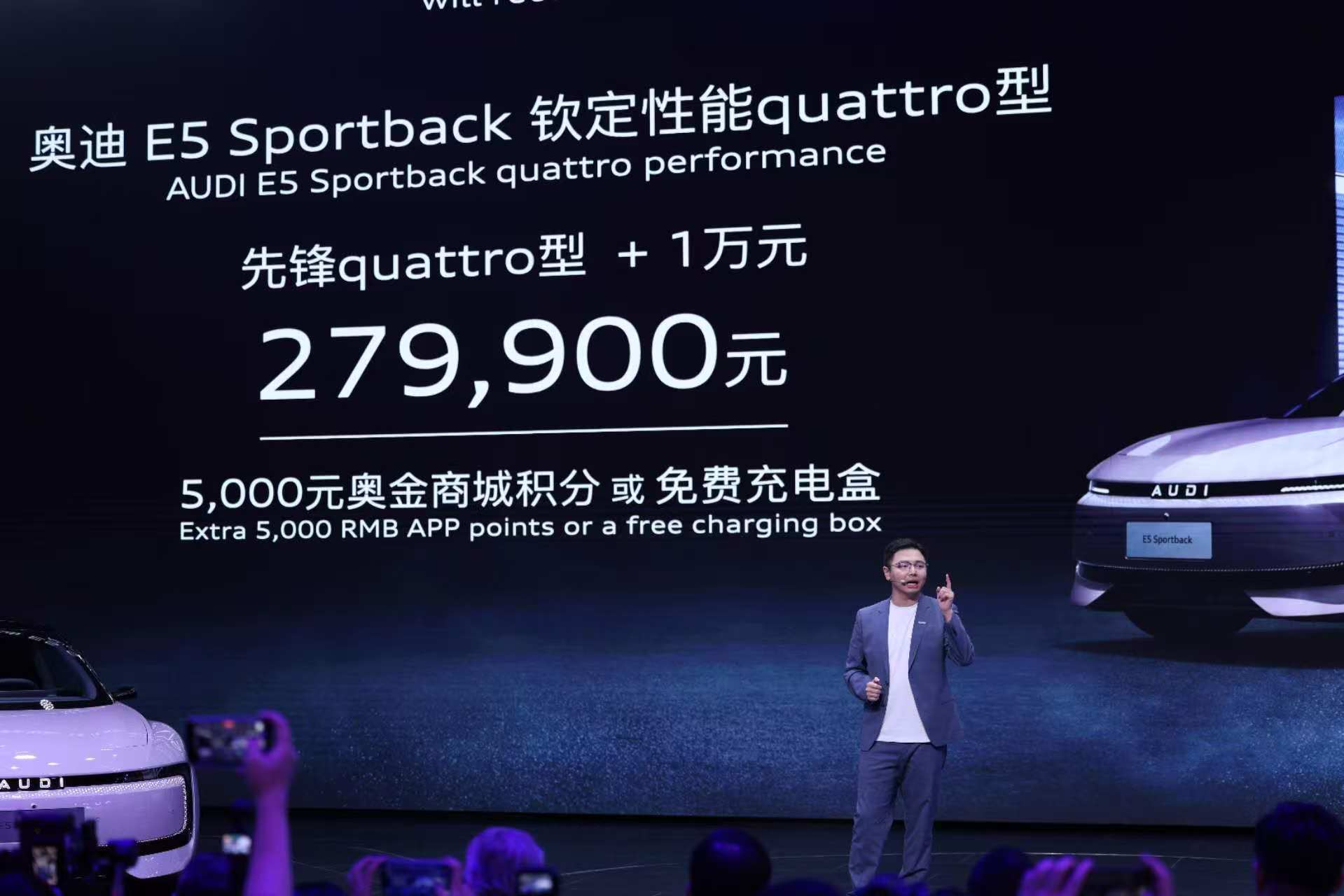 车圈重磅消息来袭!奥迪21号在广州车展正式发布了奥迪 E5 钦定性能quattro版,最大的看点不是“加了哪些配置”,而是这一次的升级是真正体现在“体验差异”上的。自从奥迪官宣郑钦文为奥迪E5的代言人,我就隐隐觉得这波不简单!发布会证明我的猜想果真如此,27.99万的售价真的很有诚意,钦定版基于先锋 quattro 型,在20吋大轮毂、空气悬架、CDC、后轮转向、BOSE 音响、前排座椅按摩、后排座椅加热等关键体验项上进行了组合式增强。官方把这套装备打包提供,而且还玩了个“超级加倍”,这些价值近5万元的装备,现在1万元就能拿下!也就是说——这是一次把“顶配体验”拉近到更多用户预算可触达的实质性升级。一次性全部配齐,这波操作,可以说是直接把的质价比和驾控体验顶到了新高度。最主要的是,除了新款,更值得关注的是:奥迪 E5 全系补贴后起售价做到了 22.59 万。在这一价格段内,能够同时把底盘质感、驾控稳定性、乘坐的舒享体验都做到位的豪华智能纯电车型并不多,而奥迪选择用“体验值”而不是“参数堆料”来做差异化。钦定版强化驾驶感和奢享感,入门 22.59 万降低门槛让更多用户可以体验豪华纯电的魅力,奥迪这次的操作,无论以诚意,还是以实力,都值得推荐!