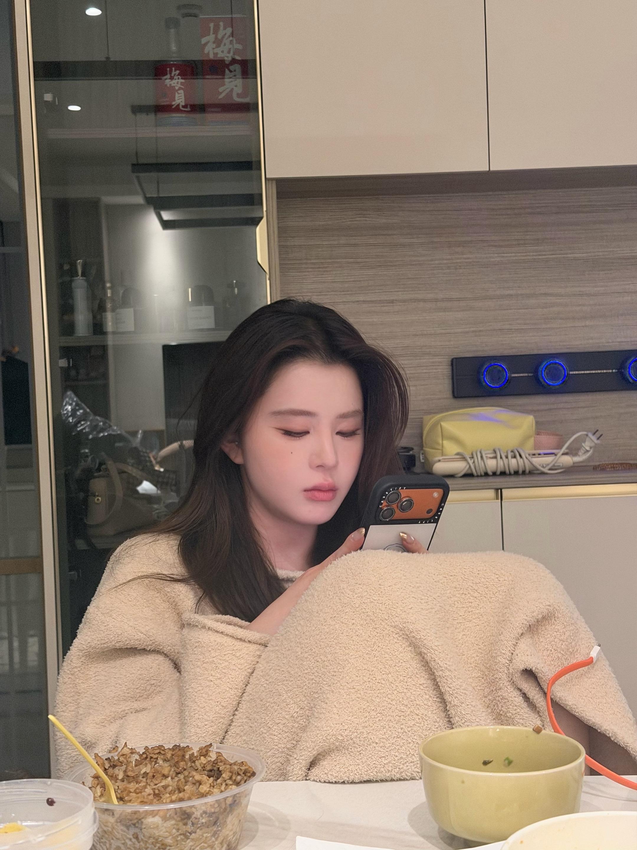 夜渐沉,暖灯揉碎一室软光。卸了妆松了发,裹着松软睡衣倚在床头,指尖随意举起手机,