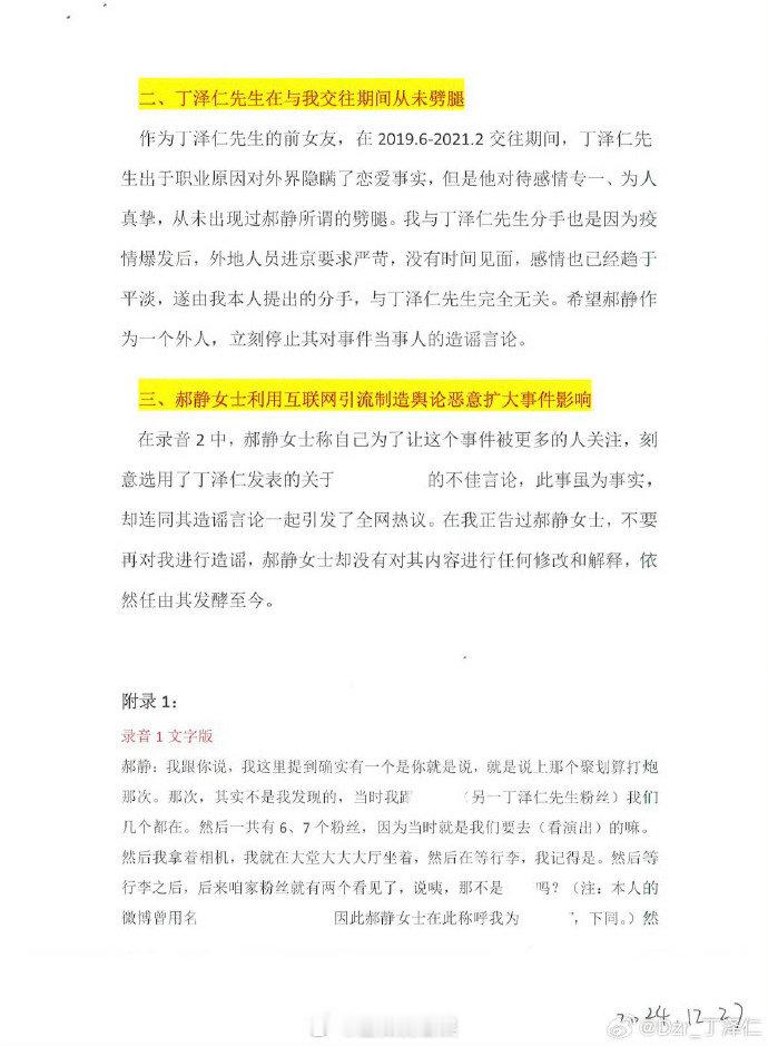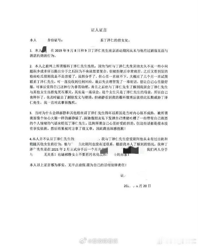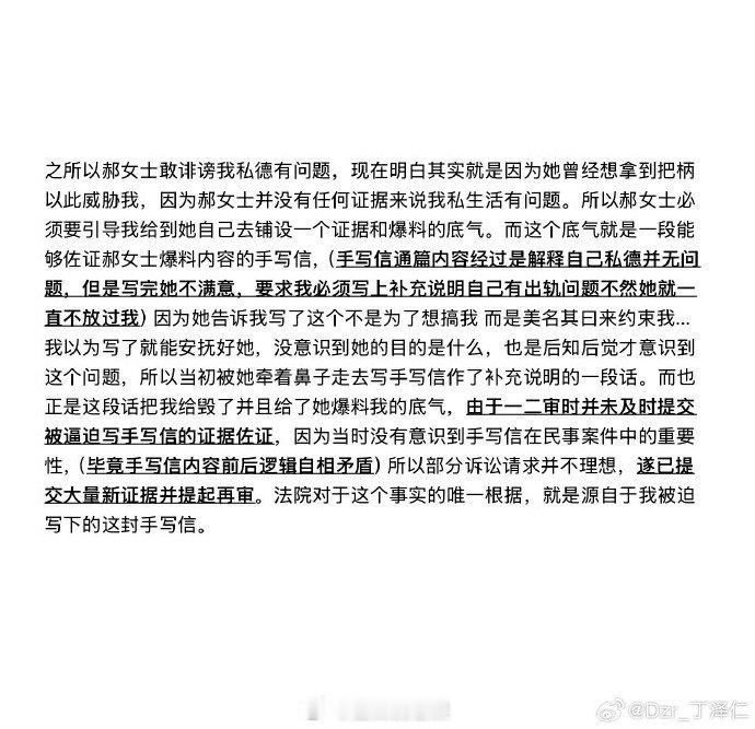 丁泽仁正面回应网络质疑!晒前女友证词与行程证据反驳传闻,强调除被迫手写信外无其他问题,指控唯一的姐违反法院规定公开判决书,要求其删除并停止引导舆论。