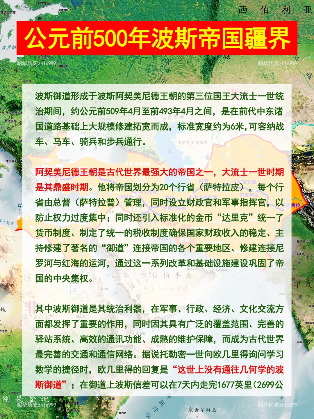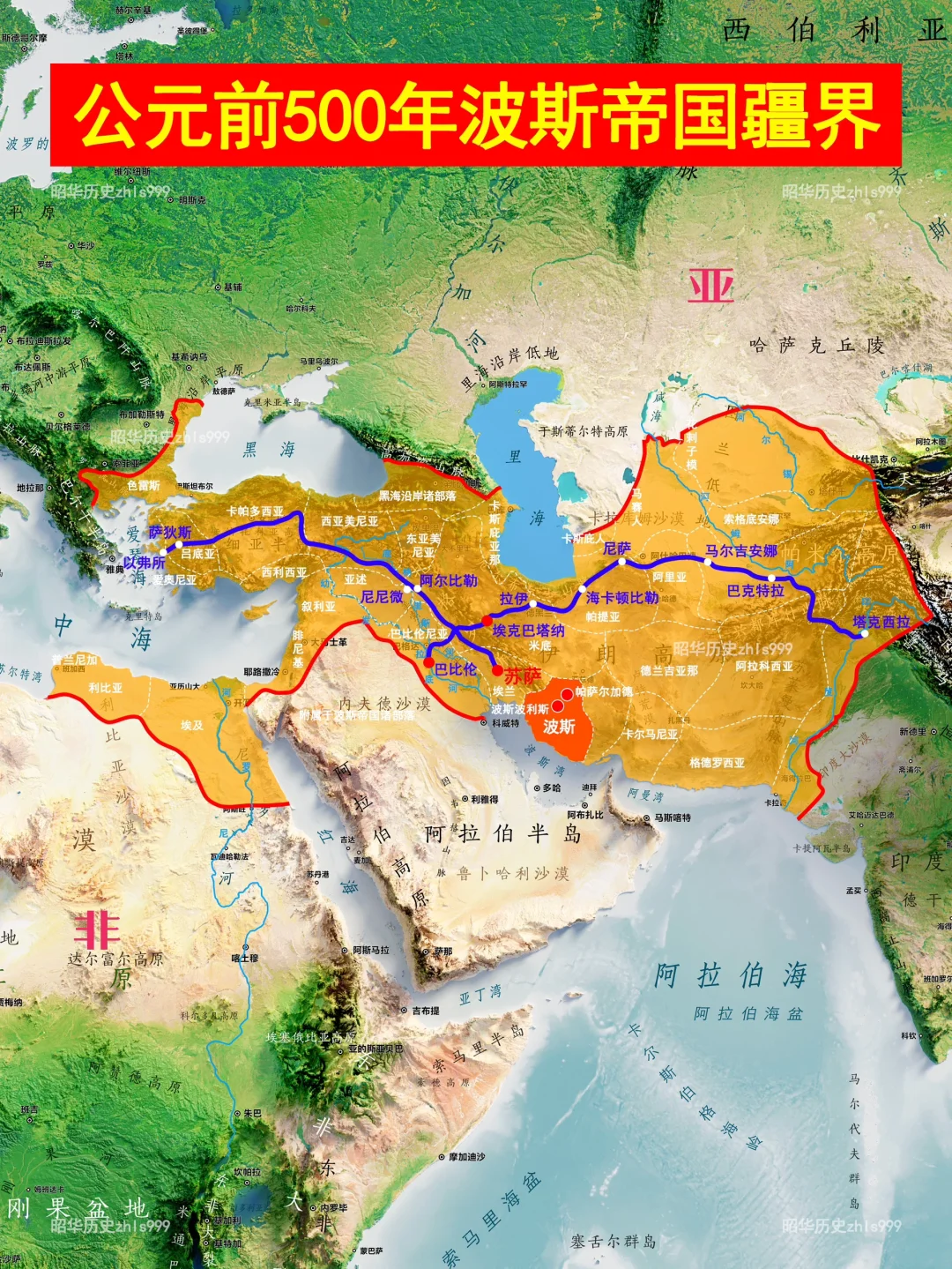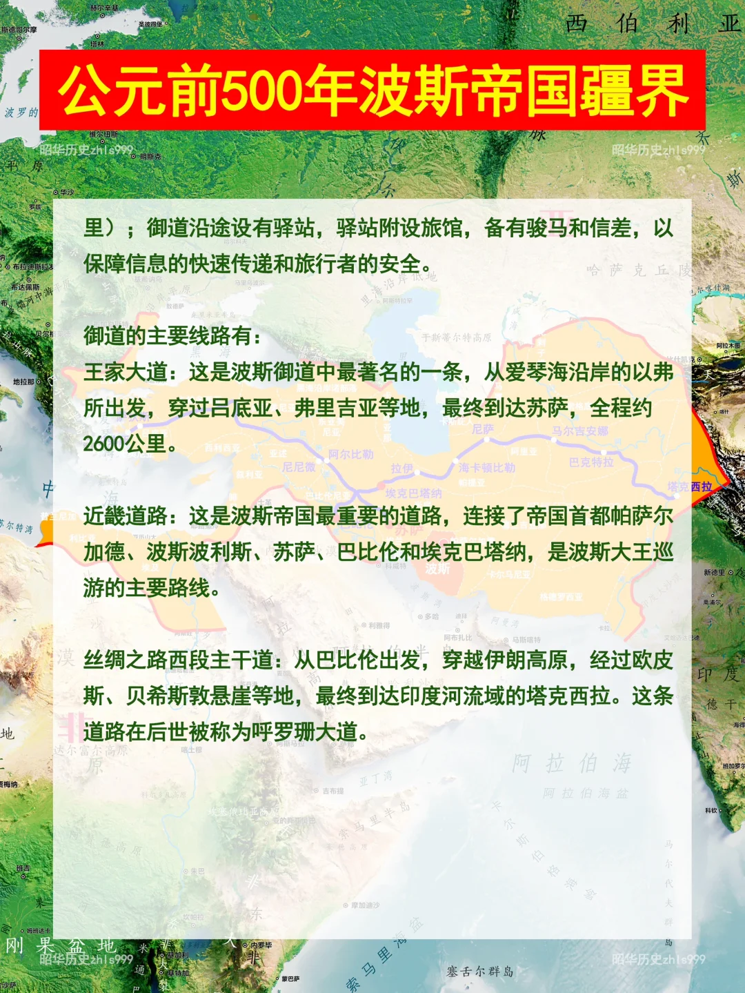 [一R]王家大道:这是波斯御道中最著名的一条,从爱琴海沿岸的以弗所出发,穿过吕底亚、弗里吉亚等地,最终到达苏萨,全程约2600公里。