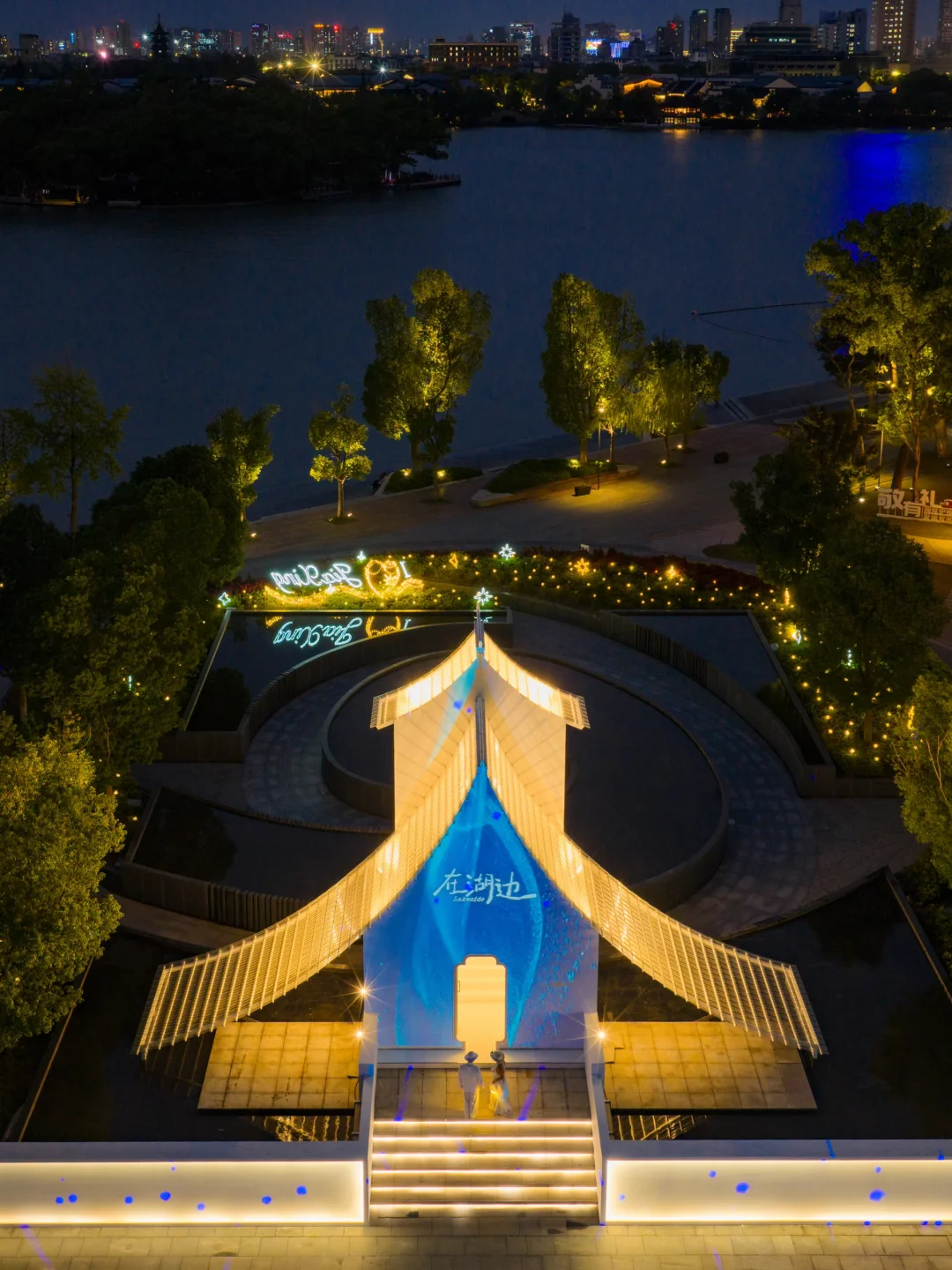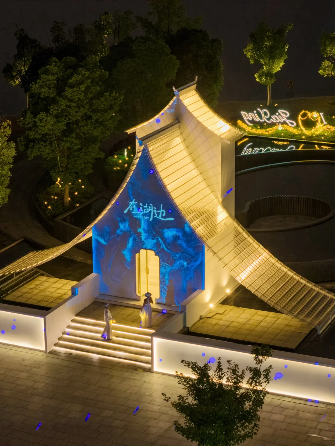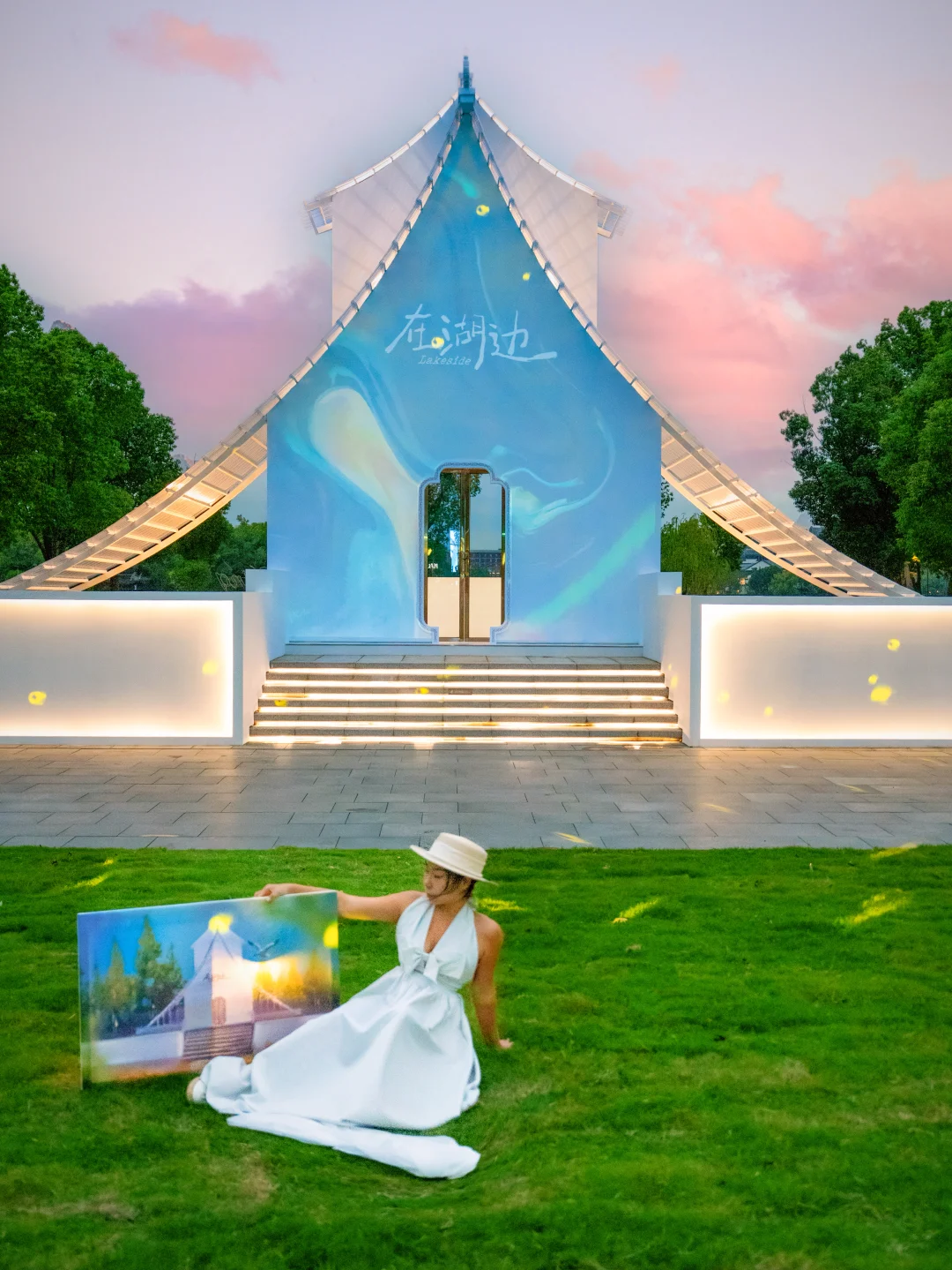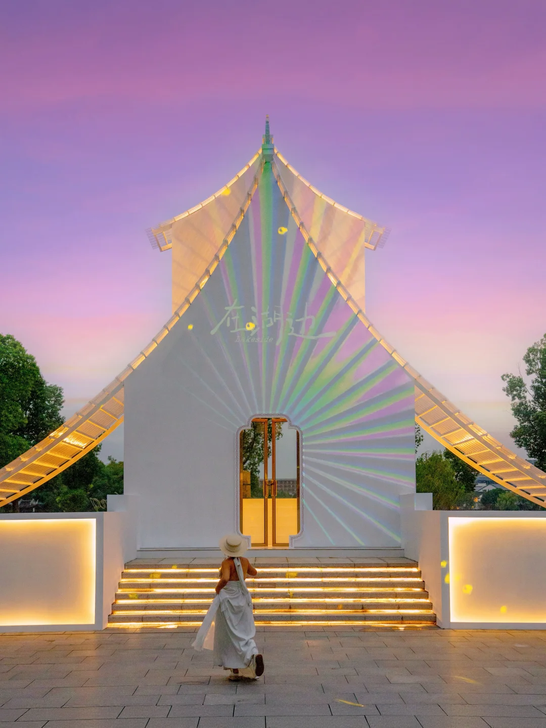 嘉兴南湖天地 一座纯白色轻艺术空间悄然伫立 待日落西沉,便摇身变成“光的容器”。 夜晚, 一场沉浸式光影秀准时上演斑斓的色彩 灯光洒下,像星星洒满绿色的草坪 纯白色建筑上投放着流动的画面 似星空倾泻,似繁花绽放~ 光和影在白色的“画布”上肆意挥舞~ 让过路的行人🚶都纷纷忍不住驻足而观。 晚风轻拂时,嘉兴的夜晚都多了几分艺术浪漫~ 📍嘉兴·南湖天地