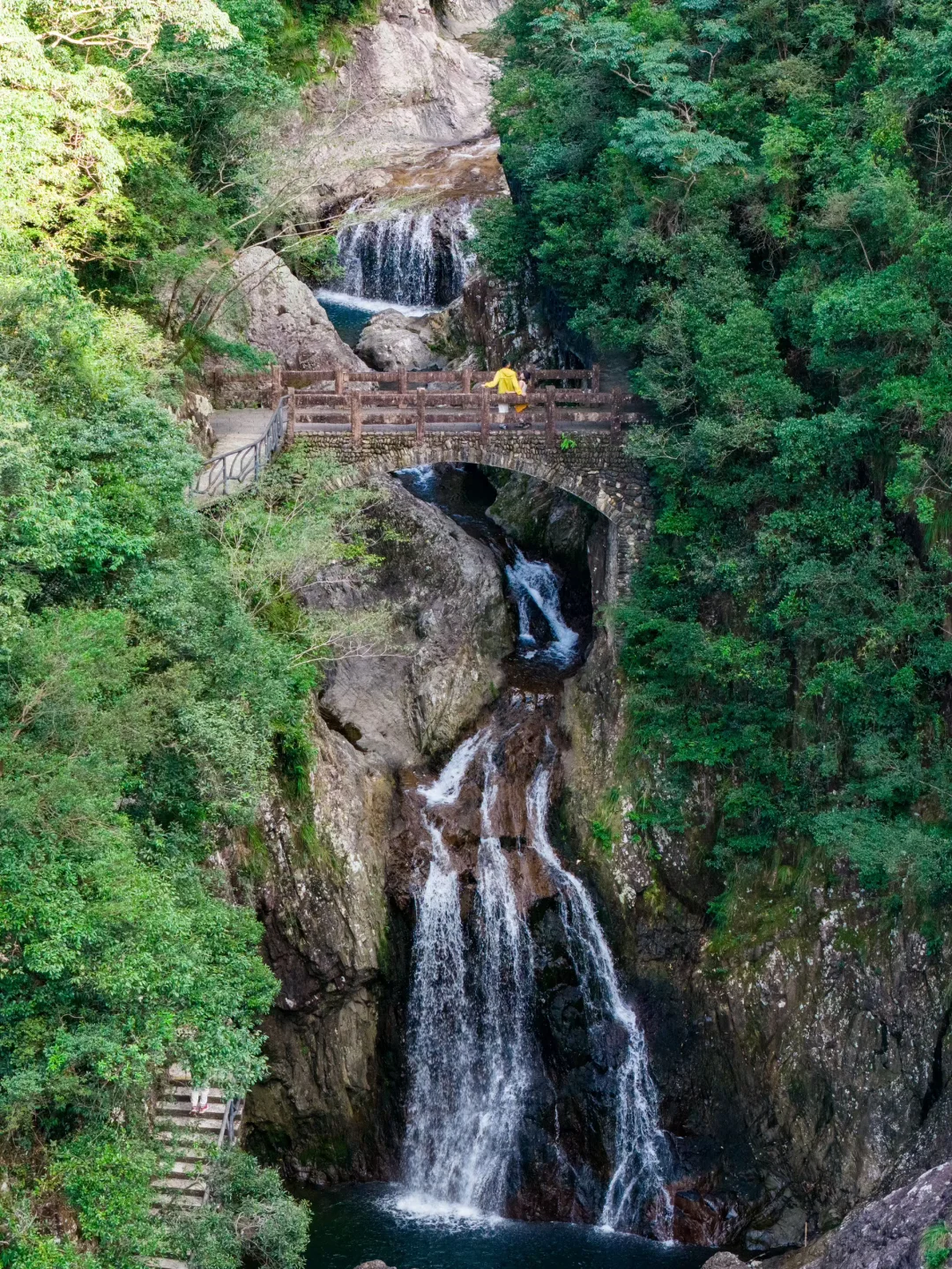 1️⃣ 七折瀑:七潭七瀑相连,雨后壮观如白练垂空。