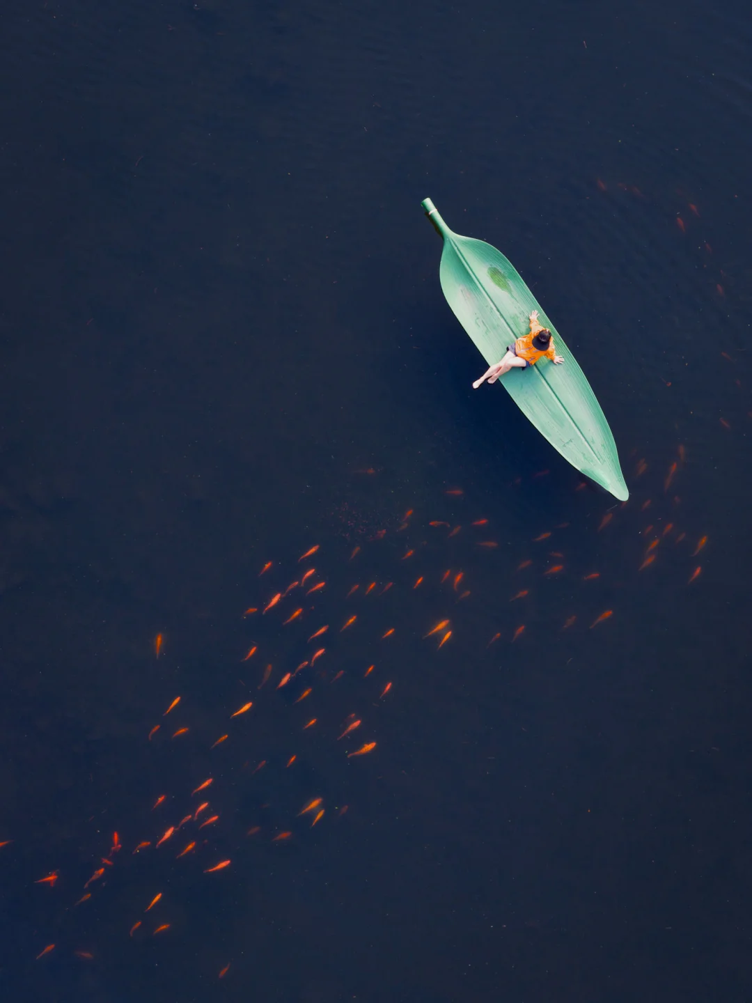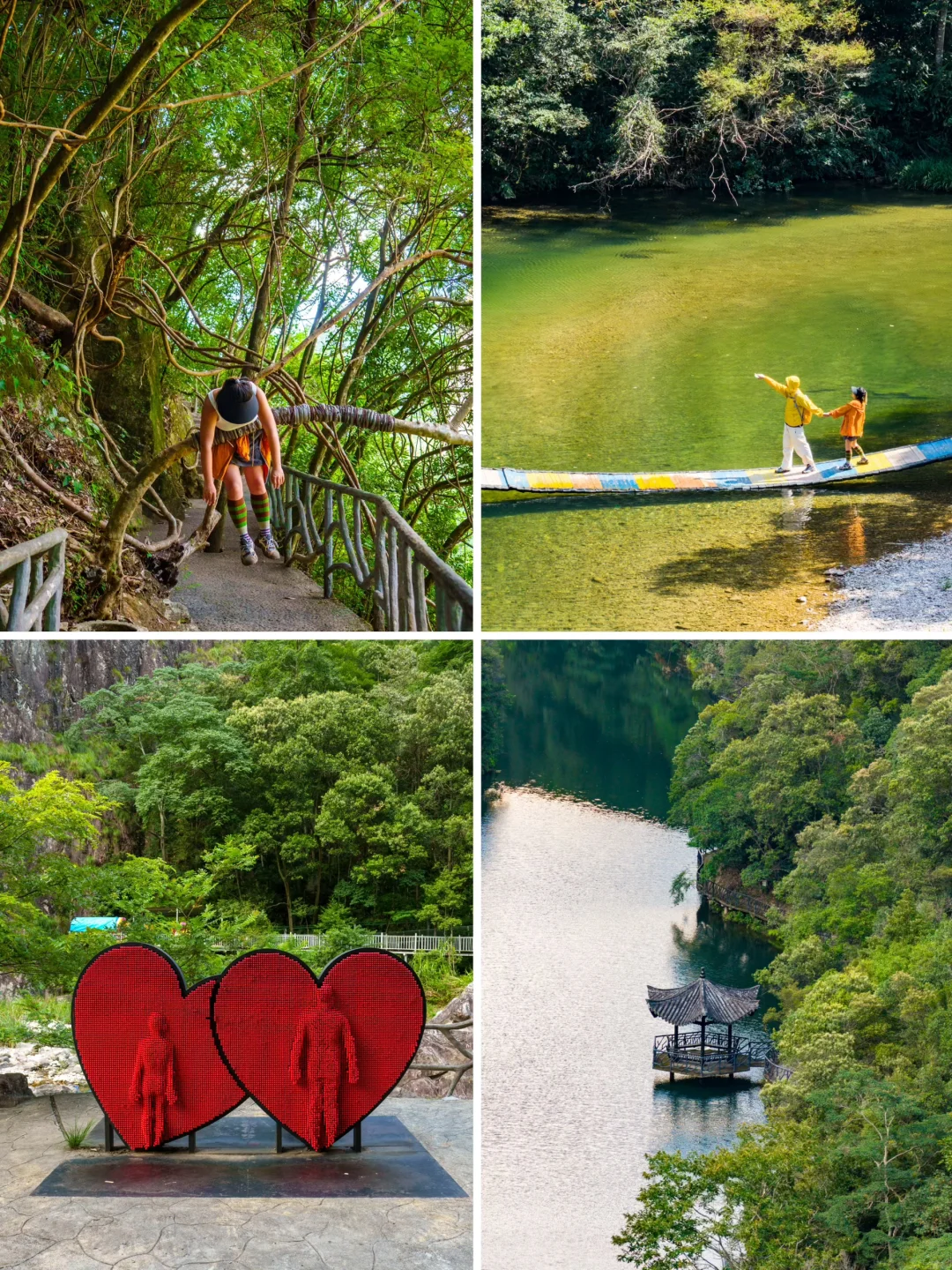 2️⃣清潭碧水:潭水清澈如翡翠,倒映青山白云,划透明小船仿佛漂浮在画中。