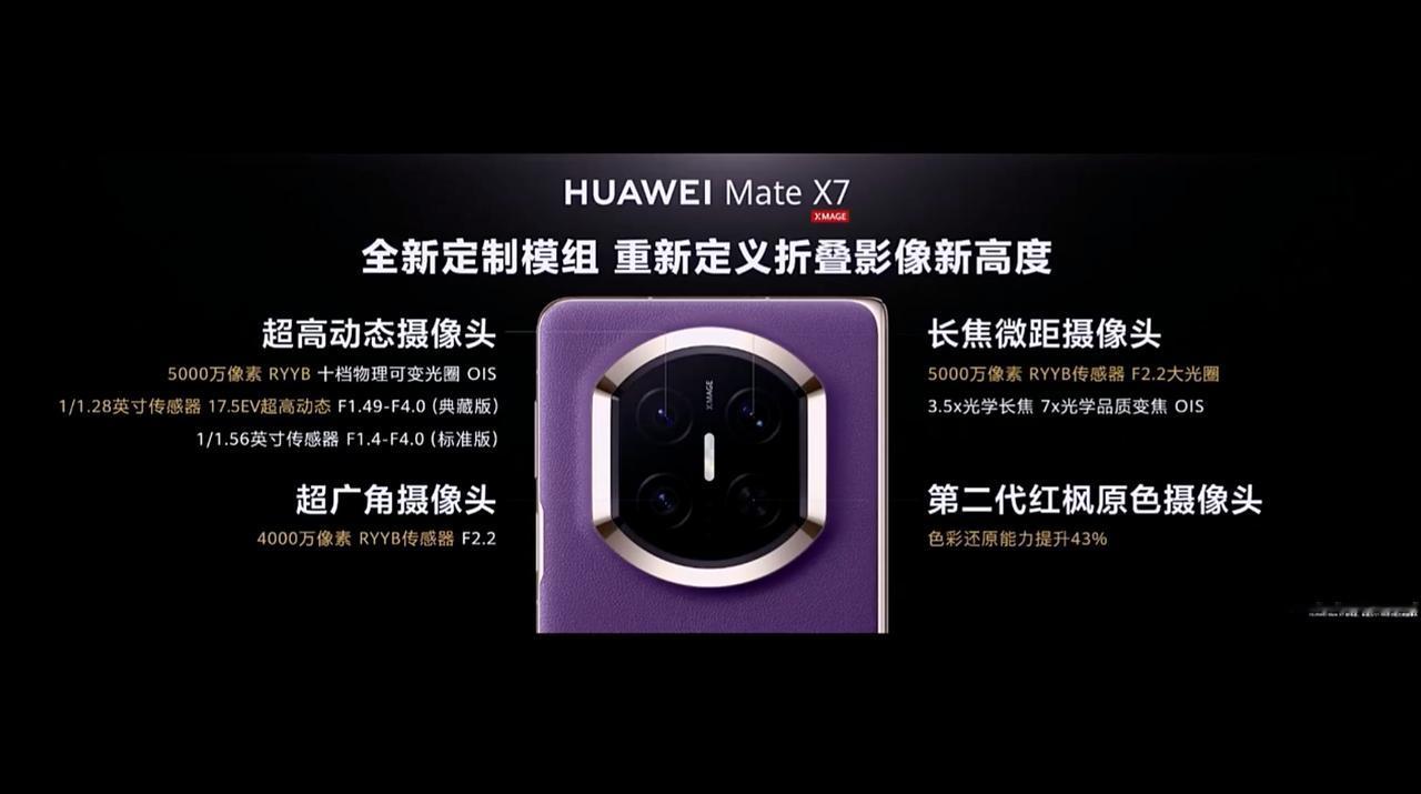 果然,Mate X7的后盖还有新的工艺!华为MateX7采用非遗云锦工艺 ,首次将传承1600年的非遗云锦工艺融入手机,祥云纹理,光影流转下呈现出金属流光。是科技,也是艺术。余总还在发布会现场为大家送上了“手握云锦,好运似锦”的祝福。 可靠性、耐用性、通信、性能、影像,这一代大折叠也是全面大提升啊。而且,紫色也是绝绝紫!