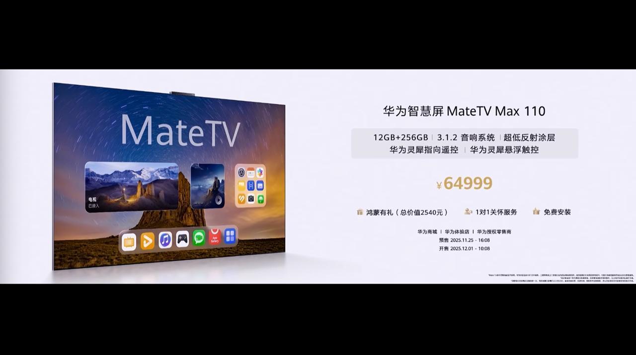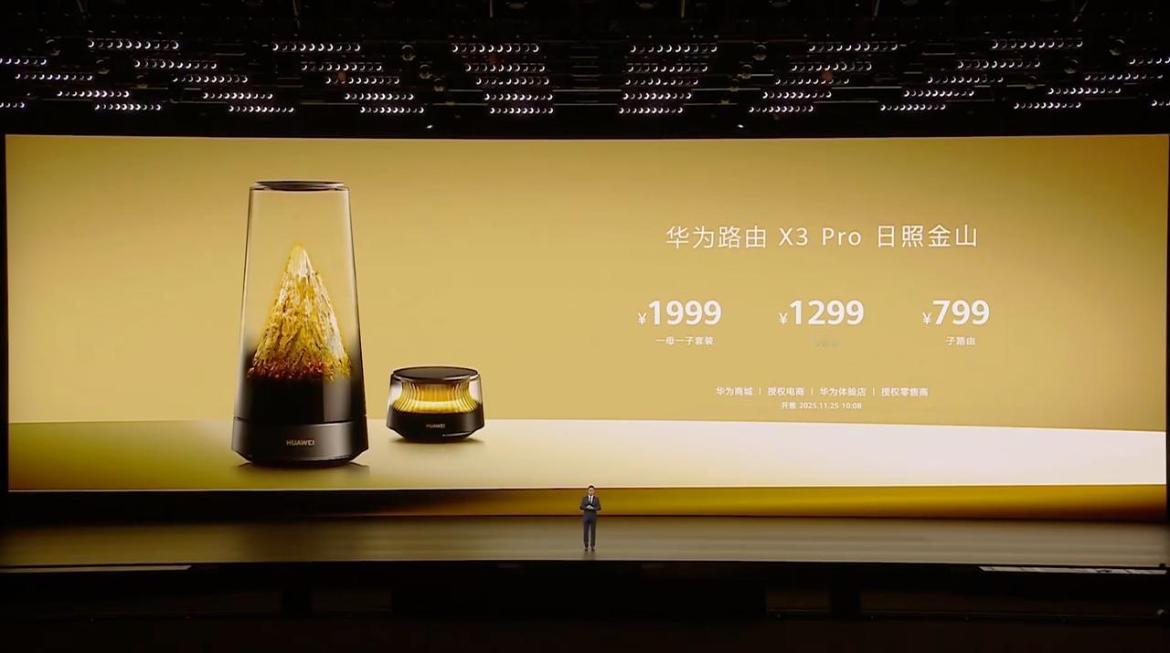 今天的 新品还是那么的多,而且都很重磅。除了Mate 80系列和Mate X7系列,还有全场景的新品,全都集结完毕。 MatePad Edge鸿蒙二合一平板电脑售价是5999元起; MateBook Pro拂晓粉售价8999元起; WATCH Ultimate 2售价6499元起; WATCH D2星云蓝售价2988元; FreeBuds Pro 5悦彰耳机售价1499元; 华为路由 X3 Pro母路由售价1299元,子路由799元,套装1999元; 华为智慧屏MateTV Max 110售价64999元。