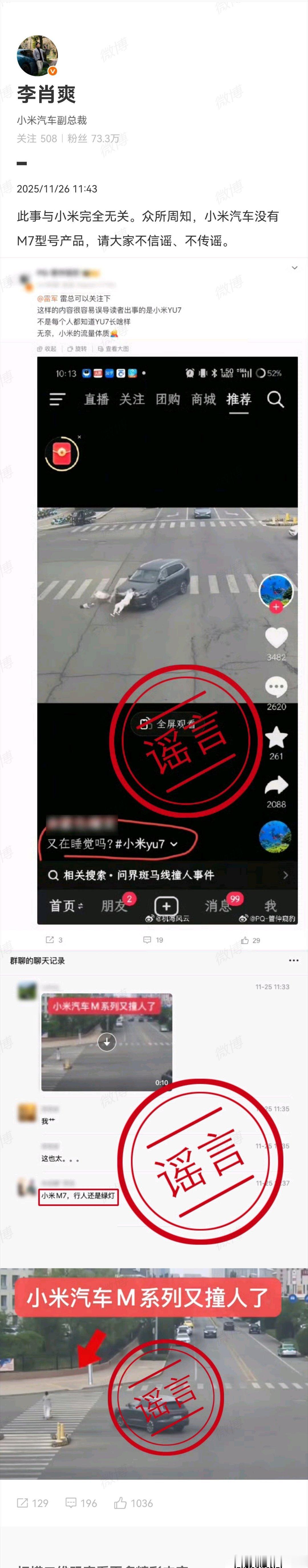 小米M7,明眼人一看都知道没这个型号,假消息用不着辟谣。不过对于普通用户来说,刷视频看到关键文字“小米汽车事故”,就已经是饭后话题了。