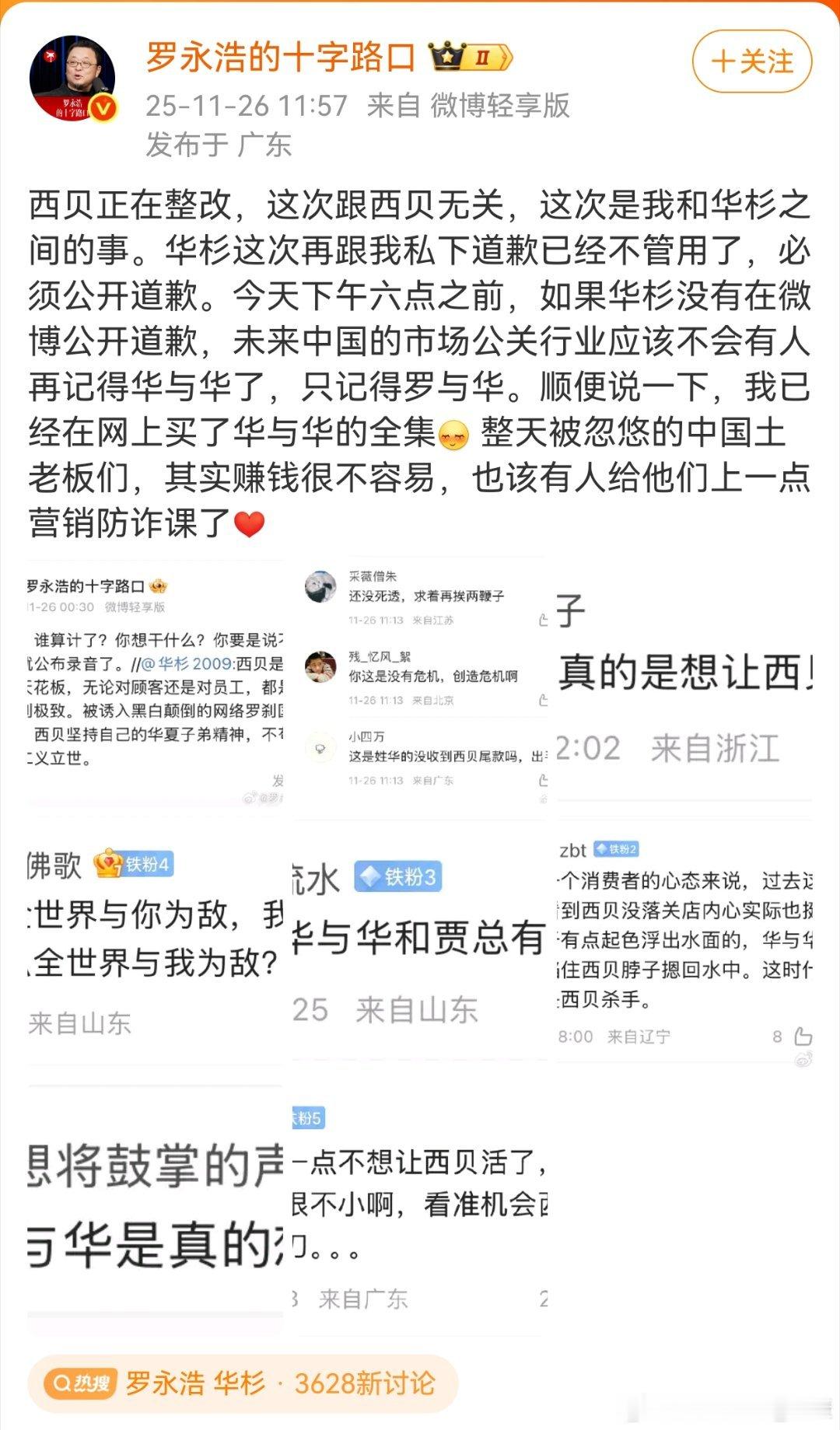 事情缘由,华杉认为西贝很好,但被人算计了。(图一)罗永浩回应,这次和西贝无关,是与华杉之间的事,看来又要开炮了。
