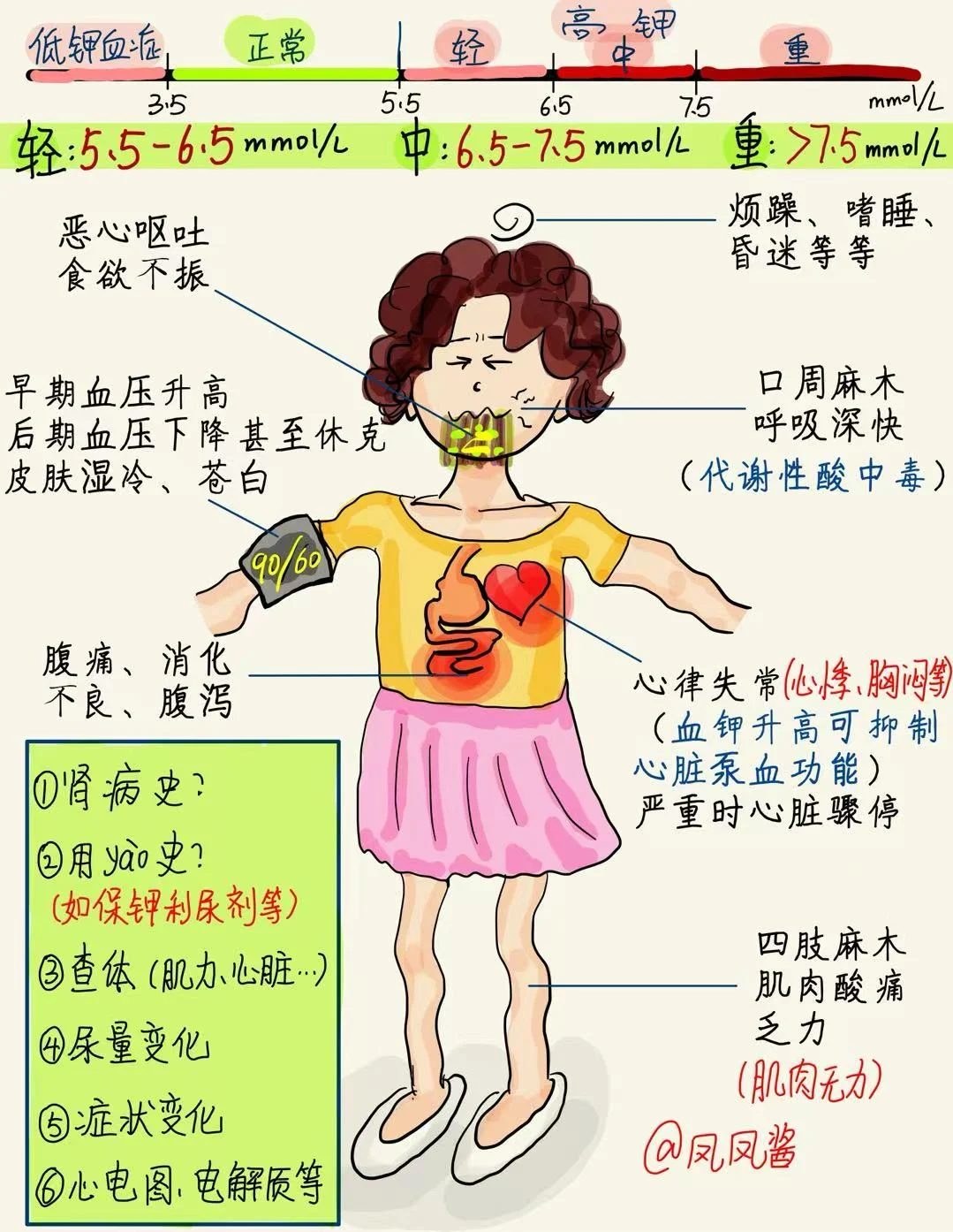 [向右R]发现高钾血症时,应尽早干预,特别是在心电图出现异常时,应紧急处理,避免危及生命哟~希望凤凤酱今天的笔记能对大家有所帮助!