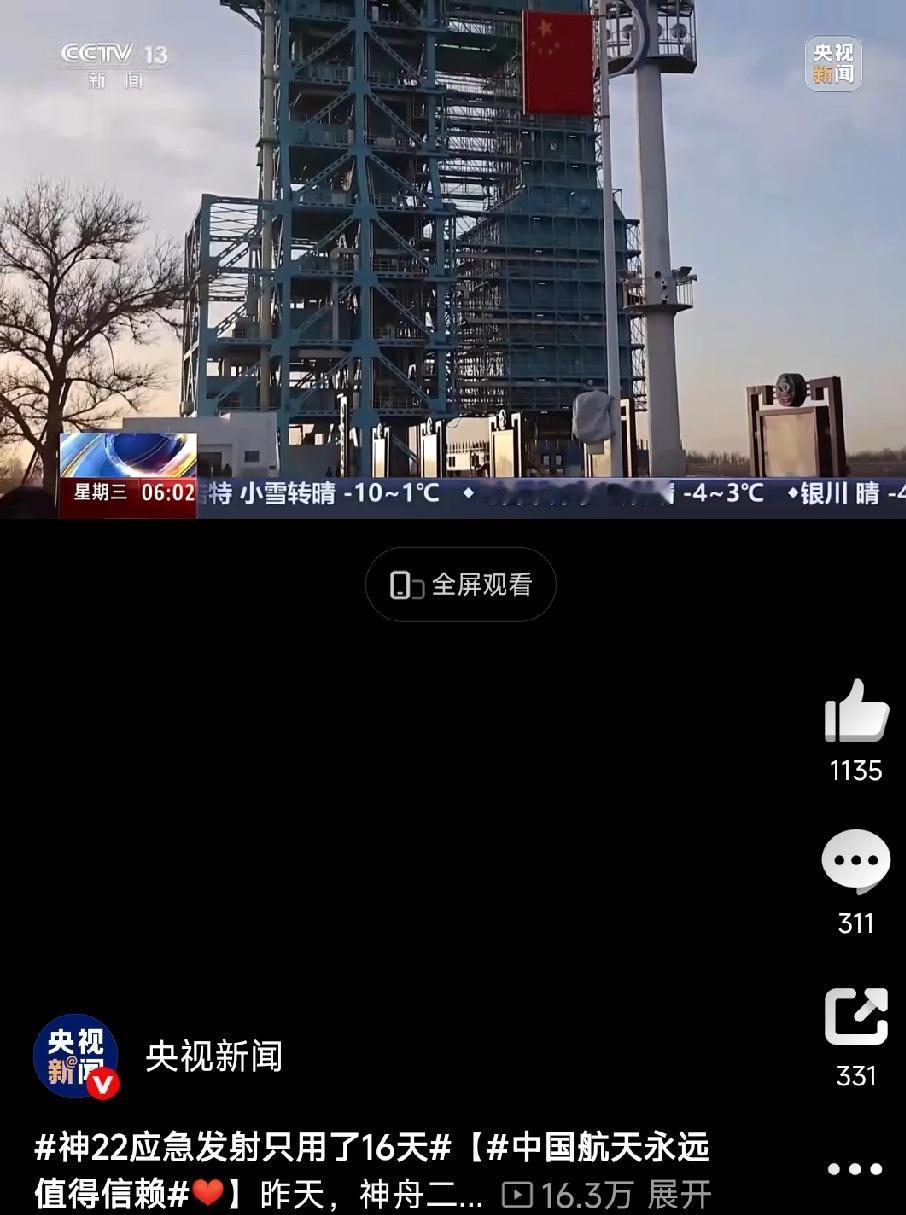 昨天可是意义非凡的一天,神舟二十二号飞船发射圆满成功!这则喜讯瞬间让无数国人热血沸腾。而此次发射最令人惊叹之处,在于其应急发射用时,仅仅16天。相较于以往30多天的准备周期,这速度犹如坐上了火箭一般。 众所周知,航天发射是极为复杂、容不得丝毫差错的庞大工程。每一个环节都需精心筹备、反复核查,任何微小失误都可能引发严重后果。但咱们中国航天人就是有这般能力,在如此短的时间内,将各项工作安排得井井有条。 在这次任务中,还有一群格外令人动容的人,就是那些已调离原岗位的老队员。他们听闻神22应急发射的消息后,毫无二话便赶回,为团队提供技术支持。他们宛如经验丰富的战士,在祖国需要之际,毫不犹豫地重返战场。他们的技术与经验恰似一颗颗定心丸,让整个团队更具信心与底气。 从发射前的“送火箭”起,整个过程宛如一场紧张刺激的大戏。工作人员认真检查火箭的准备状况,不放过任何一个细节,确保火箭以最佳状态迎接发射。那专注的神情,仿若在雕琢一件稀世珍宝。随后,工作人员陆续撤离塔架,大家的心也随之揪紧。每一步都走得坚定且谨慎,因为他们深知,自己肩负着国家的使命与人民的期望。 终于,激动人心的时刻来临!火箭点火升空,熊熊火焰照亮天空,宛如一条巨龙直破云霄。看着火箭渐渐消失在视野中,现场爆发出热烈的掌声与欢呼声。这掌声与欢呼声中,有对成功发射的喜悦,更饱含着对中国航天人的敬佩与赞美。 记者用镜头记录下了此次应急发射的全过程,让我们这些未能亲临现场的人也能感受这份震撼与感动。这次神22应急发射,再度彰显了中国航天人的实力与担当。他们用16天的时间创造了奇迹,以行动向全世界宣告:中国航天永远值得期待,也永远值得信赖!让我们一同为中国航天人点赞,期待他们未来带来更多惊喜! 来源:央视新闻