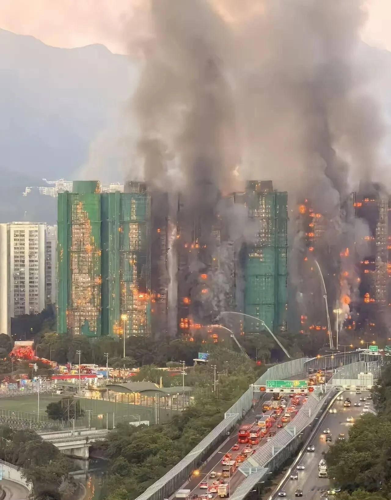 【香港这次大火为什么刹不住车?】这几个原因太真实了首先,香港是个寸土寸金的地界,从图的位置也能看出来着火的几栋高楼都在闹市区,这就耽误了很多黄金救援时间。其次,都什么年代了香港还是在用竹子的脚手架,不光安全系数不高,一旦发生火灾还会增大火势,这一次脚手架就成了助燃剂。最后,楼层太高消防车的高度有限,这样的高层建筑又加上年久失修,配套设施跟不上,消防车在外围的作用可以说是微乎其微。从视频来看,这是一个组团房屋,间距较近。应该是外墙重新装修,为了降成本采用了竹篙脚手架及塑料围网,房屋室内是有人居住的。这些客观因素导致了一处起火后快速燃烧并引发相邻楼房起火并导致室内亦起火,风助火势酿成大祸。它搞个维修把小区几栋楼全部变成了施工现场,这很值得思考,为何不是分批进行,因为这样整个小区都陷入施工范围。