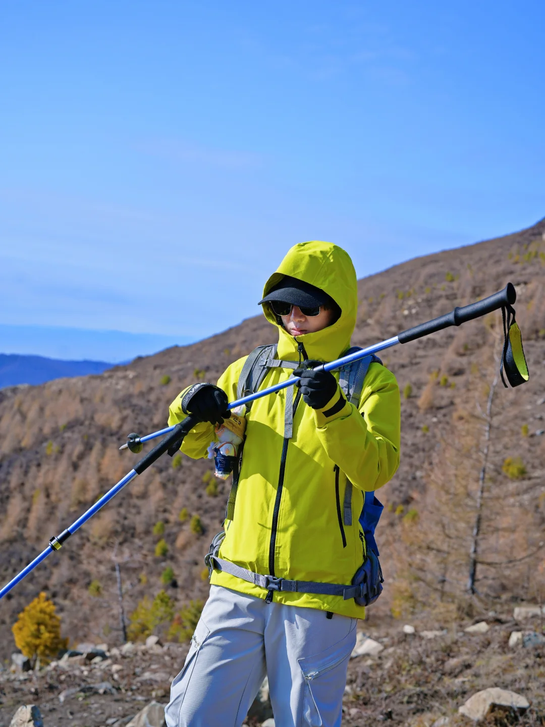 手套和护脸这个季节也都需要带上了呦,手套可以选加绒防水的记得带触屏功能,带着两个暖宝宝,可以贴在速干衣外侧(别贴皮肤),如果再冷一些手机上也贴个暖宝宝,就不会冻关机啦,出去户外要确保通讯畅通