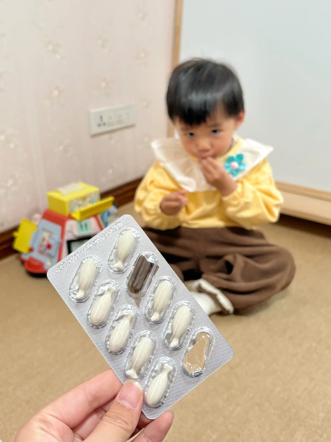 结果她用小门牙嗑开“小鱼”的尾巴,直接吸溜里面的钙