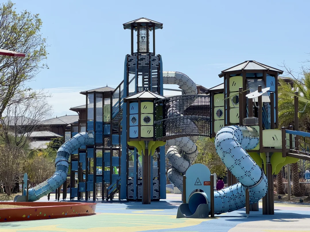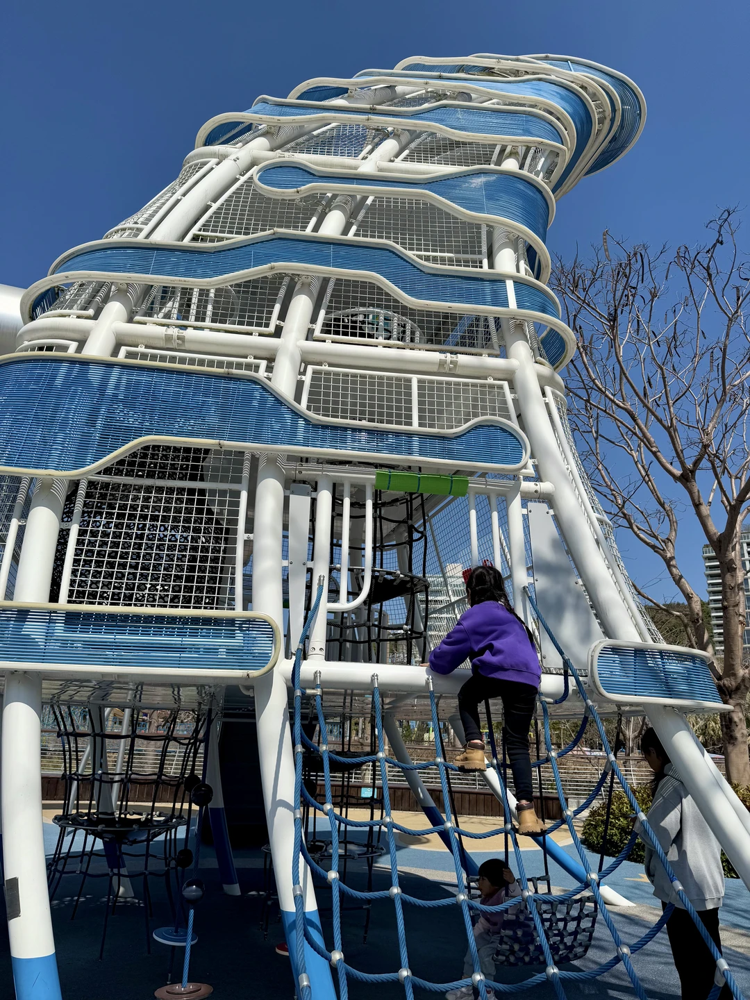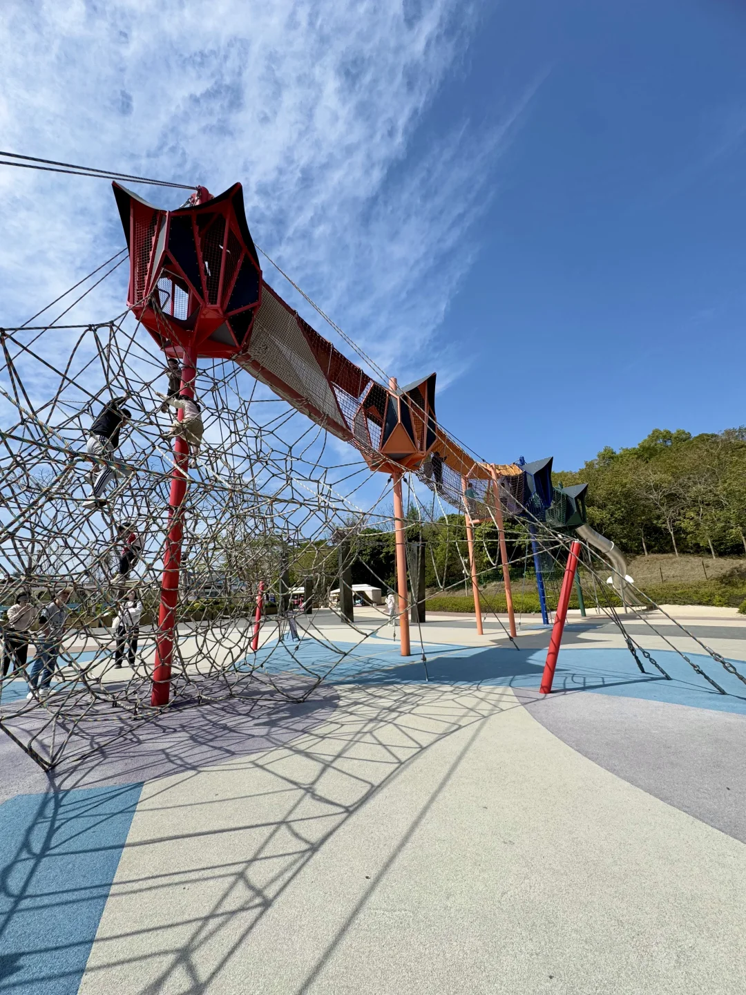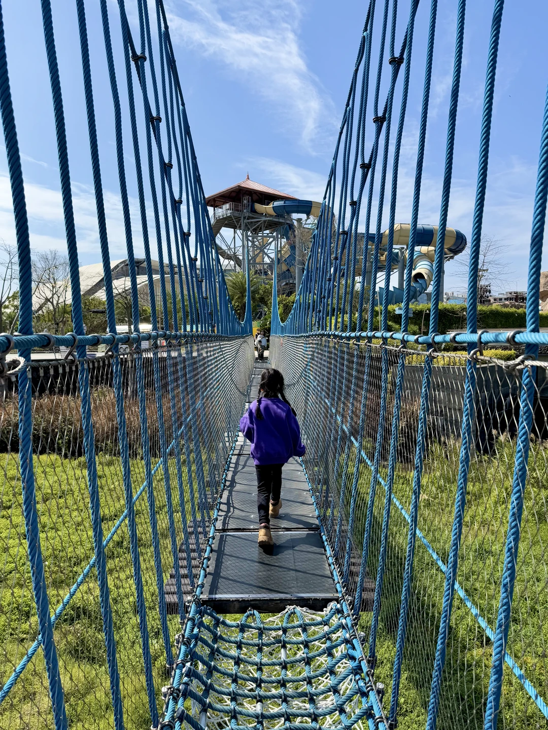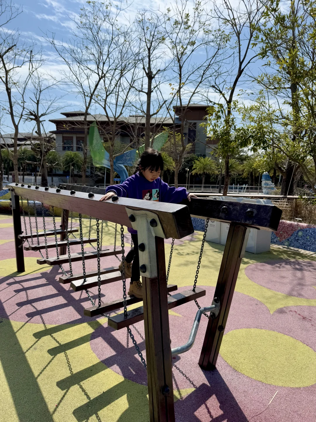 公园里的无动力设施有很多,各种年龄段的攀爬设施和滑滑梯都有,还有秋千、蹦蹦床等等,还有吊桥,拍照也很出片!小朋友放电几个小时没问题!