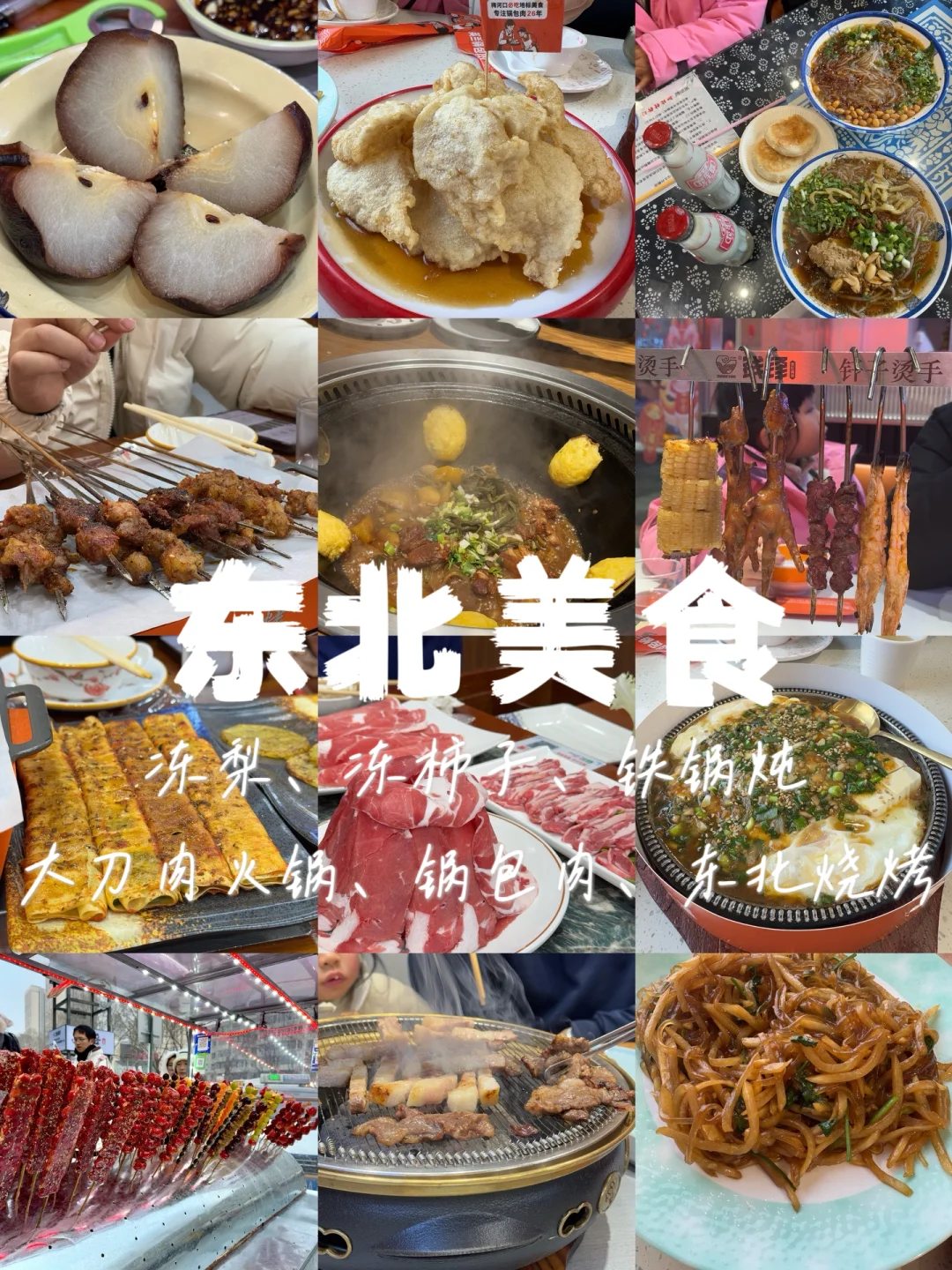 长春:天添纸包鸡家常菜、楼外楼大刀肉传统火锅、闯关东铁锅炖、钱锋炭缸烧烤(感觉苍蝇馆子的烧烤更好吃)、小炭家烧烤(机场附近)