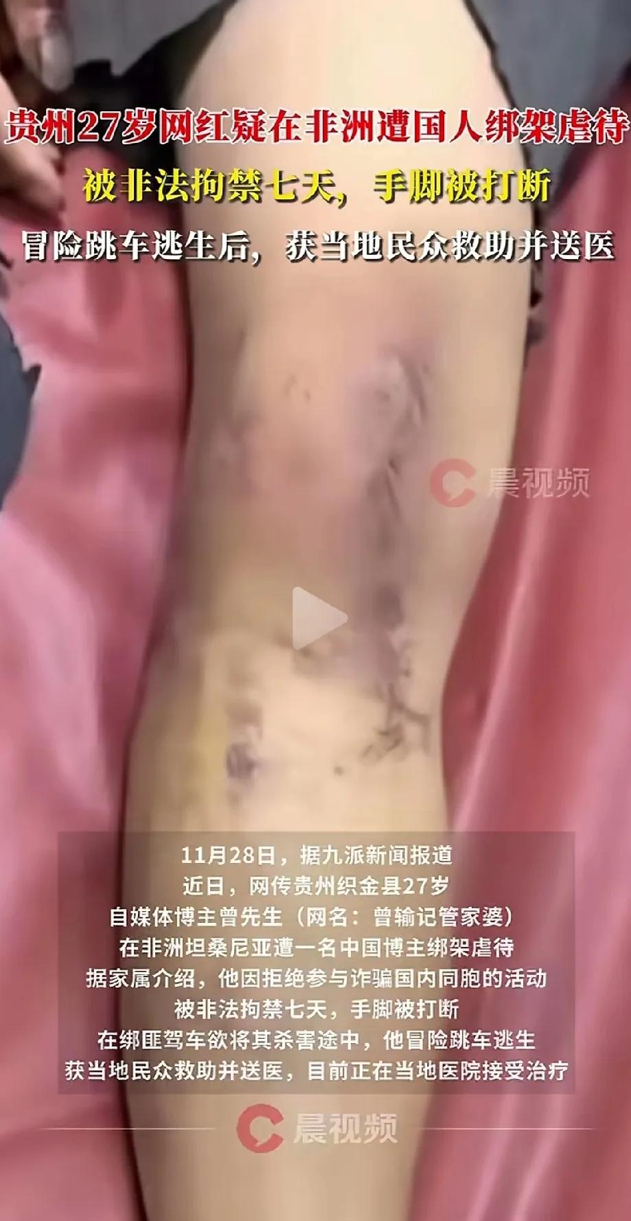 网红在非洲被同胞绑架,打断了双手双腿,差点折磨至死,趁人不备,跳车逃脱,被当地人发现救了他。 太讽刺了,出门在外还以为都是自己人,会相互照顾,坏人跑到了国外,都还只想着害自己人。