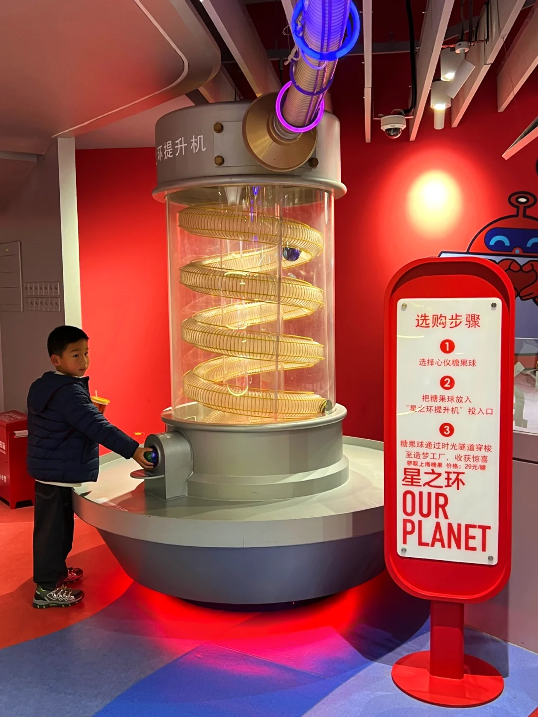 其它你都都都都可以不用买🛍️ 但是,这个!!!!!你不能错过[喝奶茶R] 29r 解放双手,还你一整个趣味十足。 One ☝️ 现在糖果星球上面选一个自己喜欢的样子。(图一) Two ✌🏻 把选好的糖果🍬球塞进传送口 然后它就会“嗖”一下,从你的头顶传送饭买单的位置。(图二) Three 👌 结账后呢,把糖果取出来,让工作人员给糖果球做一个“已付款”的标志✅就可以无限次数玩。 🔔:世纪大道1号东方明珠电视塔1层 ⌚️:10:00-22:00 🚇: 2号地铁到陆家嘴1号门