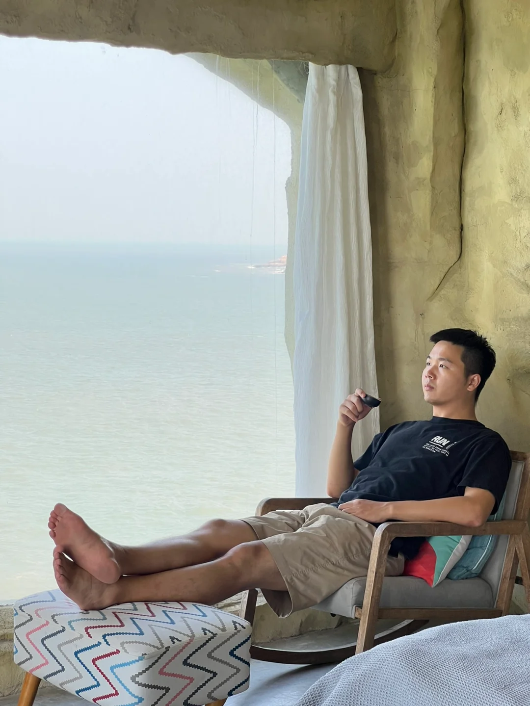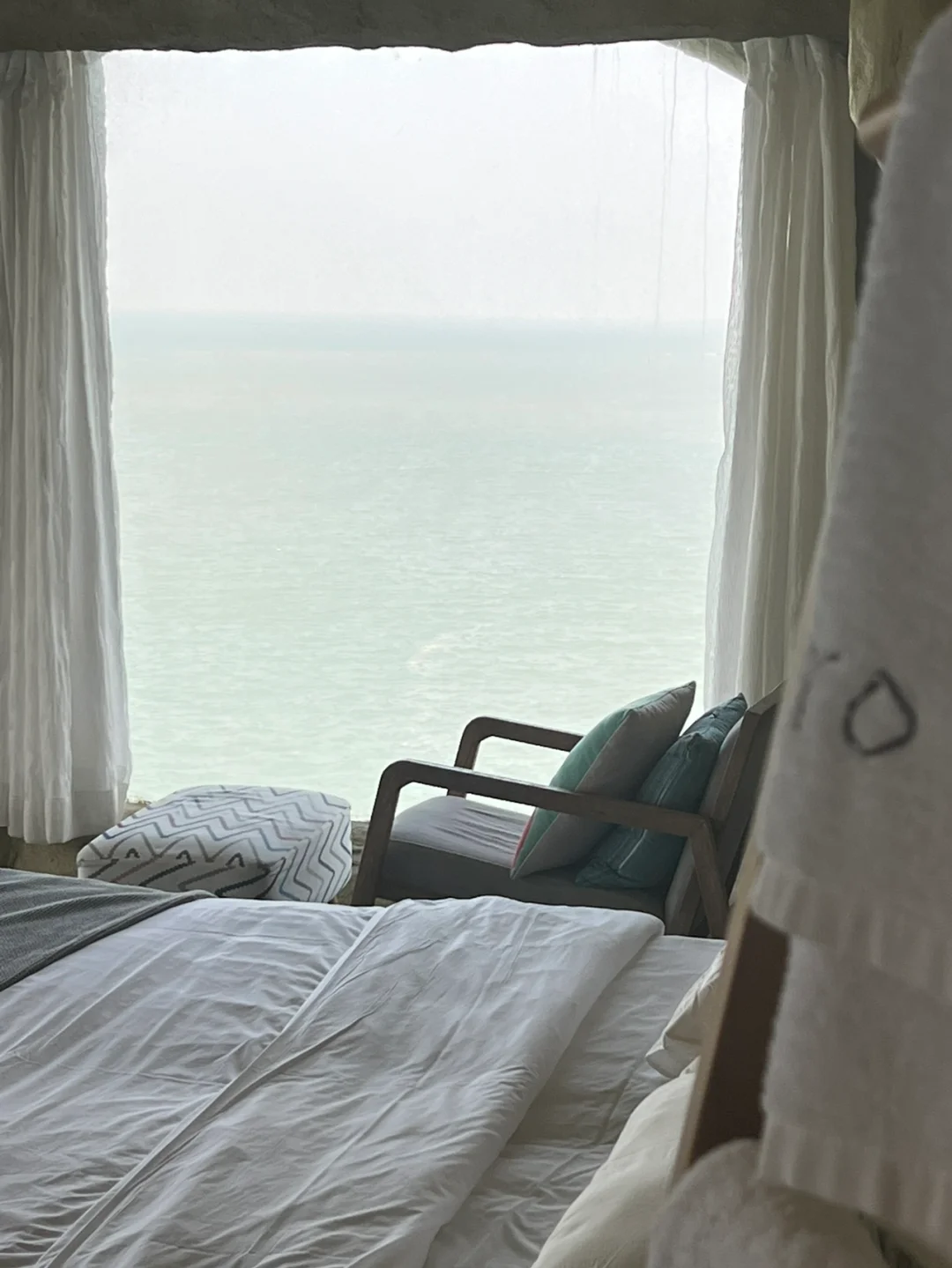 酒店🏨附近需要走一个弯到下面,有个滩涂感的小沙滩,沙子很粗,但是有很多小🦀️,可以玩一下。但是没有斜阳的,可以跟酒店借把伞。