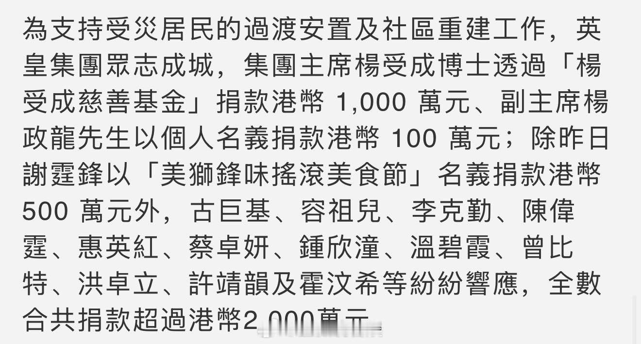 陈伟霆捐款100万元香港大埔宏福苑火灾事故后捐款100万用于受灾民众安置,是一直在默默做公益的饱饱!陈伟霆为香港火灾捐款100万陈伟霆