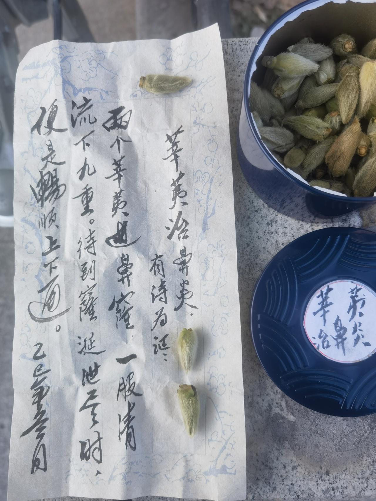 【父亲的莘荑(心意)!】下午,回家看望老爸,临走时,父亲说:“星星有鼻炎,听说莘荑治鼻炎,我在公园采了一盒,回来试了试,效果果然不错,你拿回去让孩子也试试。” 出得门来,打开小盒子,里面有30余颗莘荑,还有一张纸条,展开,父亲亲笔写到:莘荑治鼻炎,有诗为证:两个莘荑进鼻窿,一股清流下九重。待到窿涎泄尽时,便是畅顺上下通。乙巳年冬月。 我回家赶紧将莘荑交给儿子,这真是:爷爷心意(莘荑)啊!