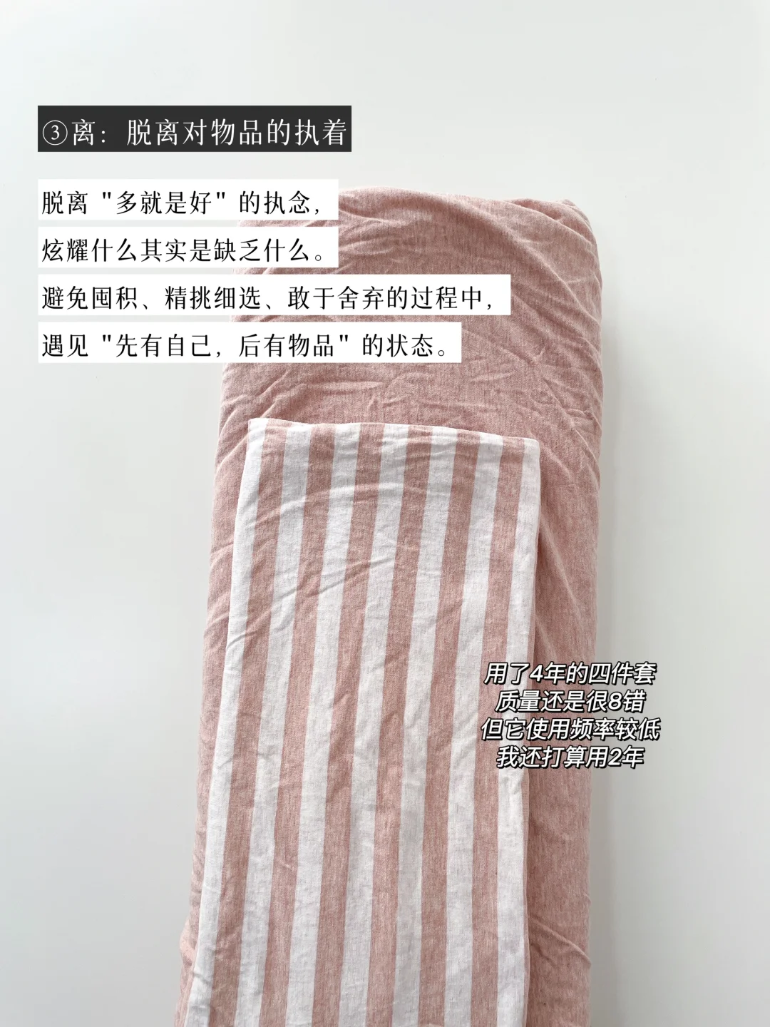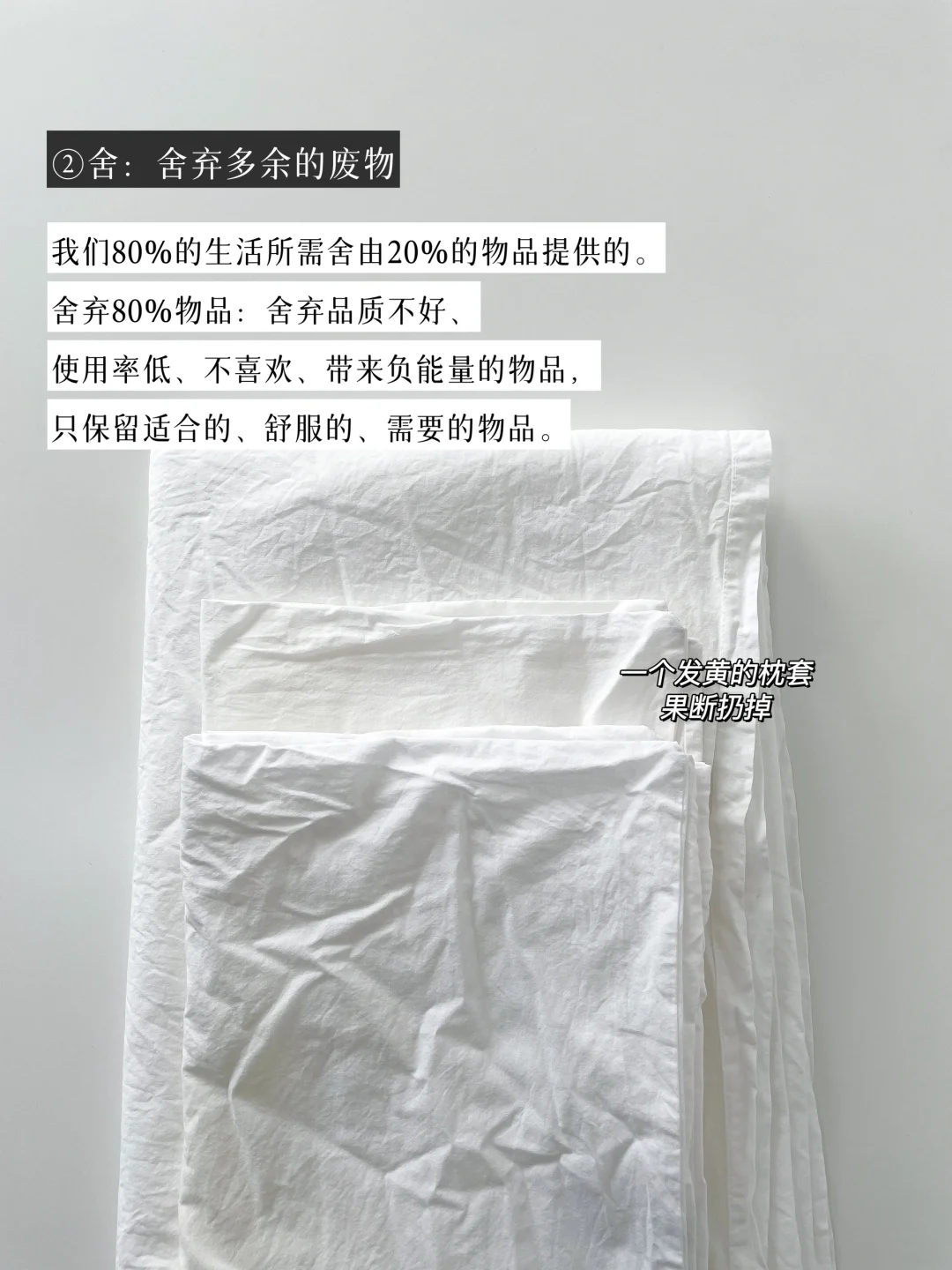 ⑤3年断舍离四件套,发白和发黄的马上扔。(我扔了2个发黄发白的枕套)