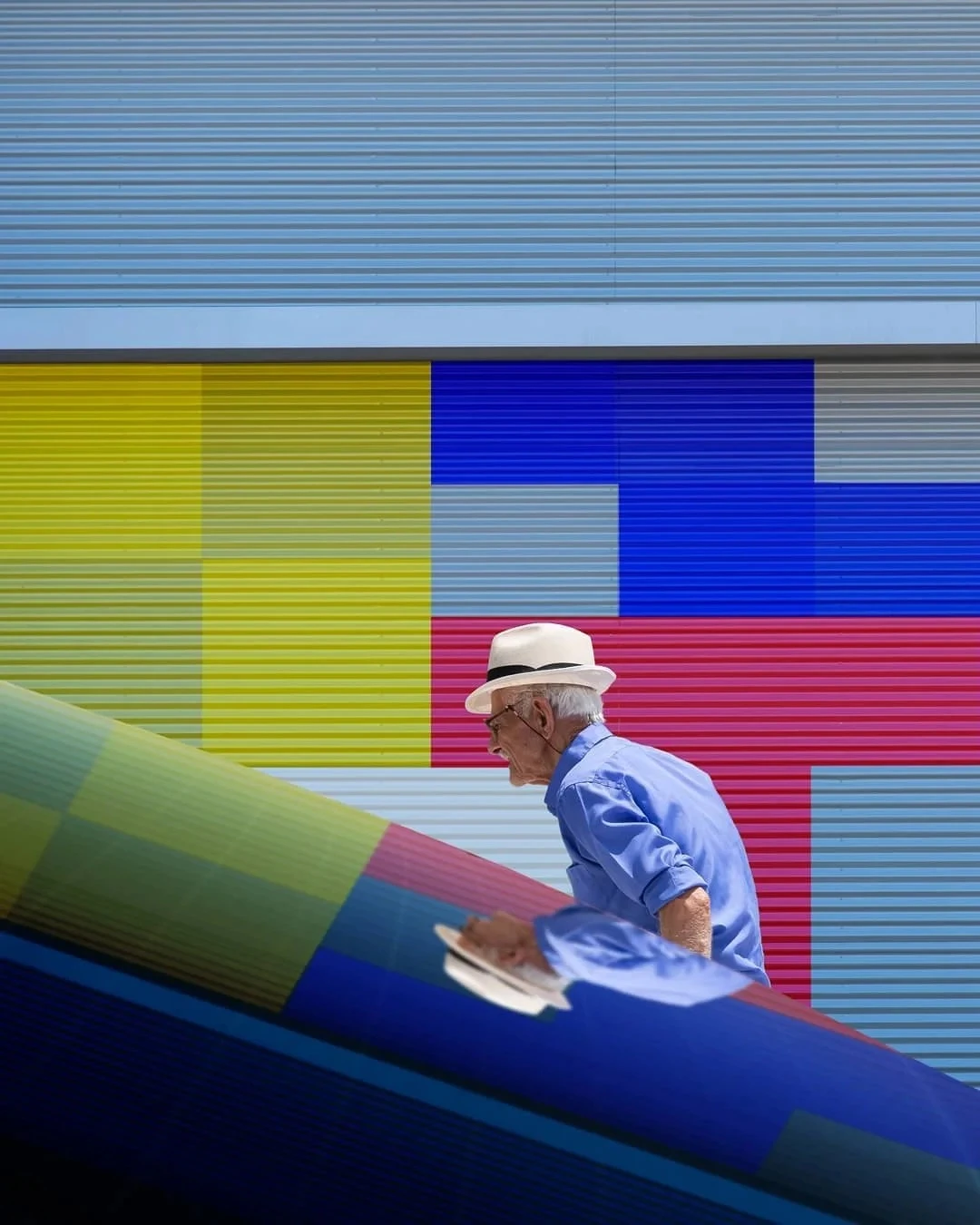 大家好,我是东东。今天想和大家分享希腊摄影师George Natsioulis。他擅长运用明暗光影、轮廓形体、色彩及平衡的交互,打造出风格鲜明的作品。他常聚焦于平凡人物,如独自漫步街角的城市居民,通过巧妙的结构与光影布局,让这些形单影只的身影融入画面,成为充满张力的元素。