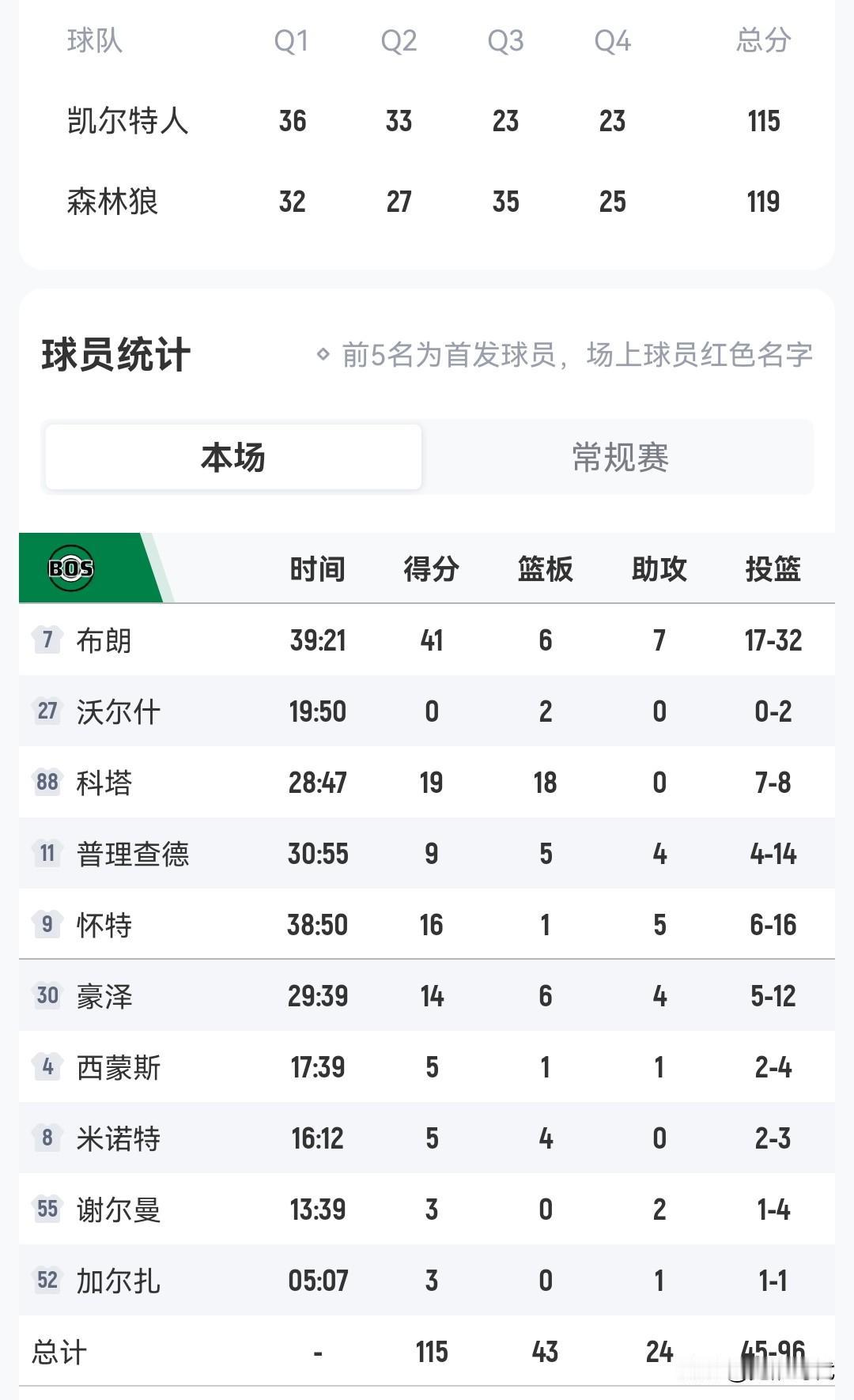 爱德华兹39+5 森林狼胜绿军 布朗41+7