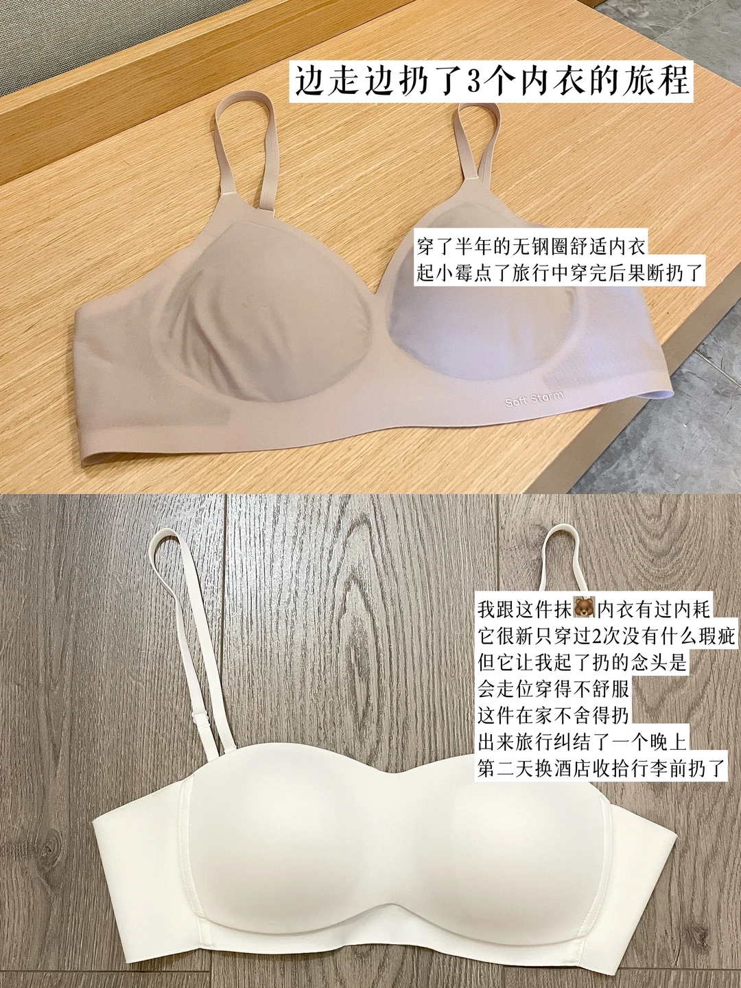 6.三个已经起黑点的内衣,当天穿完立马扔。