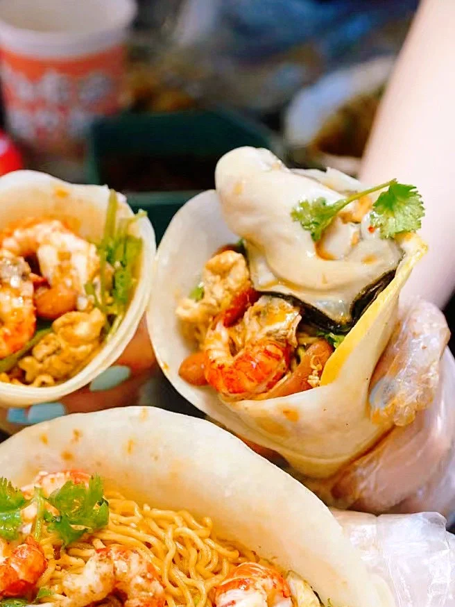 之前刷到的都在外地,现在乐清也有了,它是自己DIY的,我们把生蚝也夹了进去,那口感和视觉的盛宴真的非常不错的。