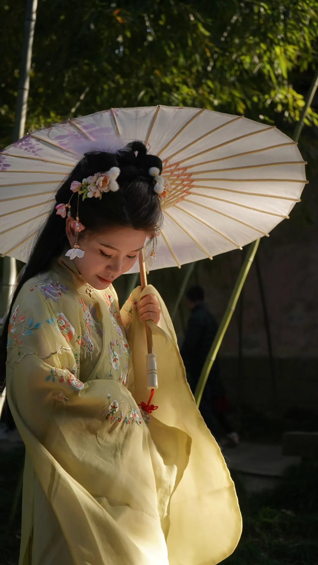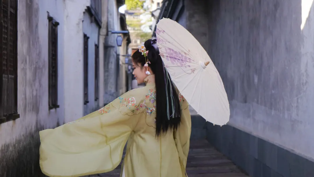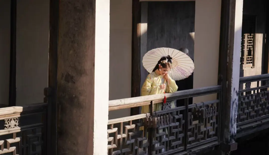 3.古巷新拍:让女生拿油纸伞轻转,提裙侧身回眸(会显瘦),抓拍眼神细节,氛围感拉满。