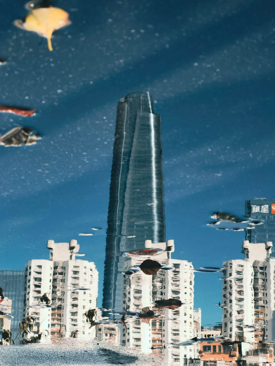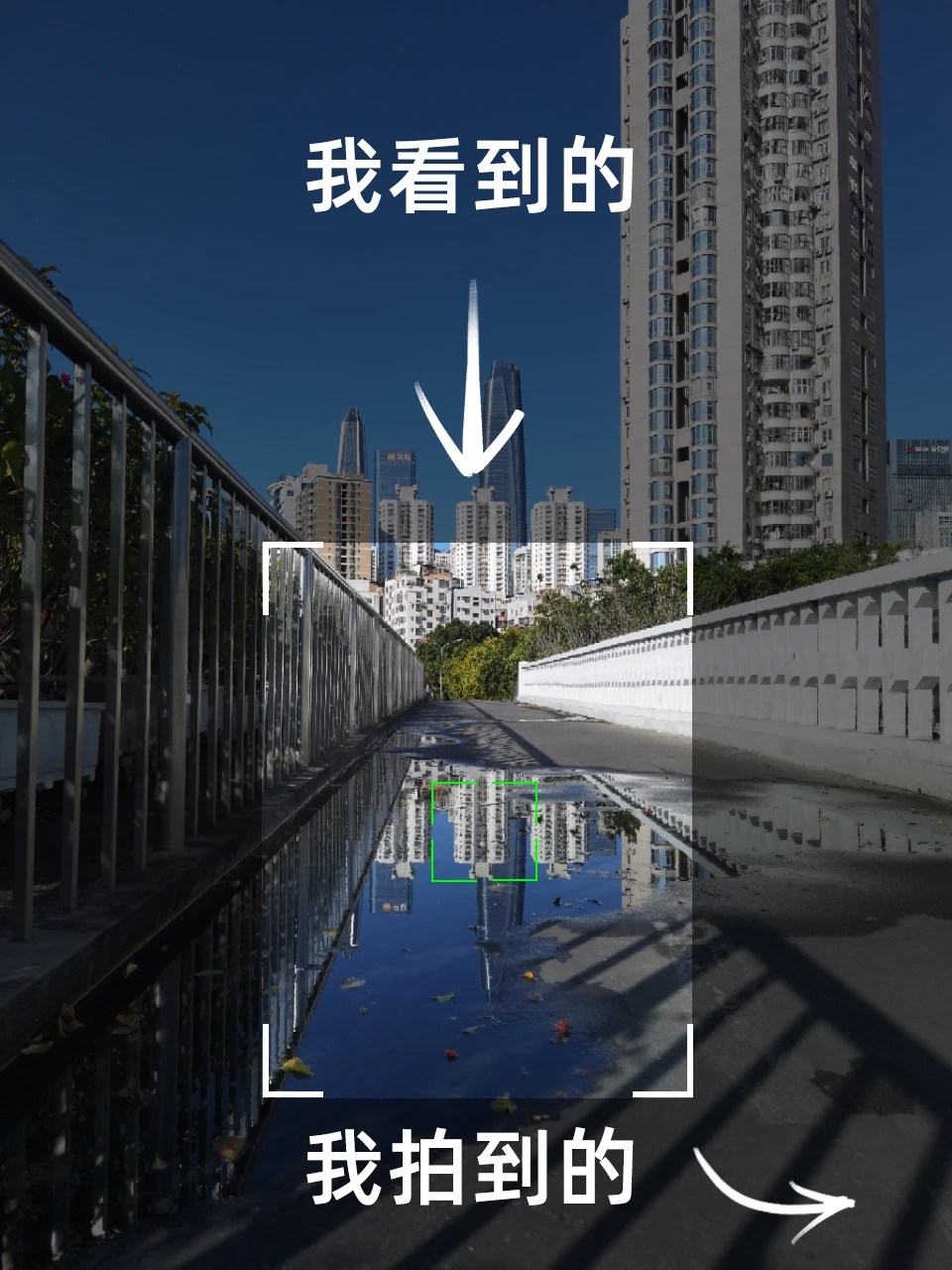 [七R][八R]:人行天桥,水洼倒影,放低机位,拍摄大百汇倒影。