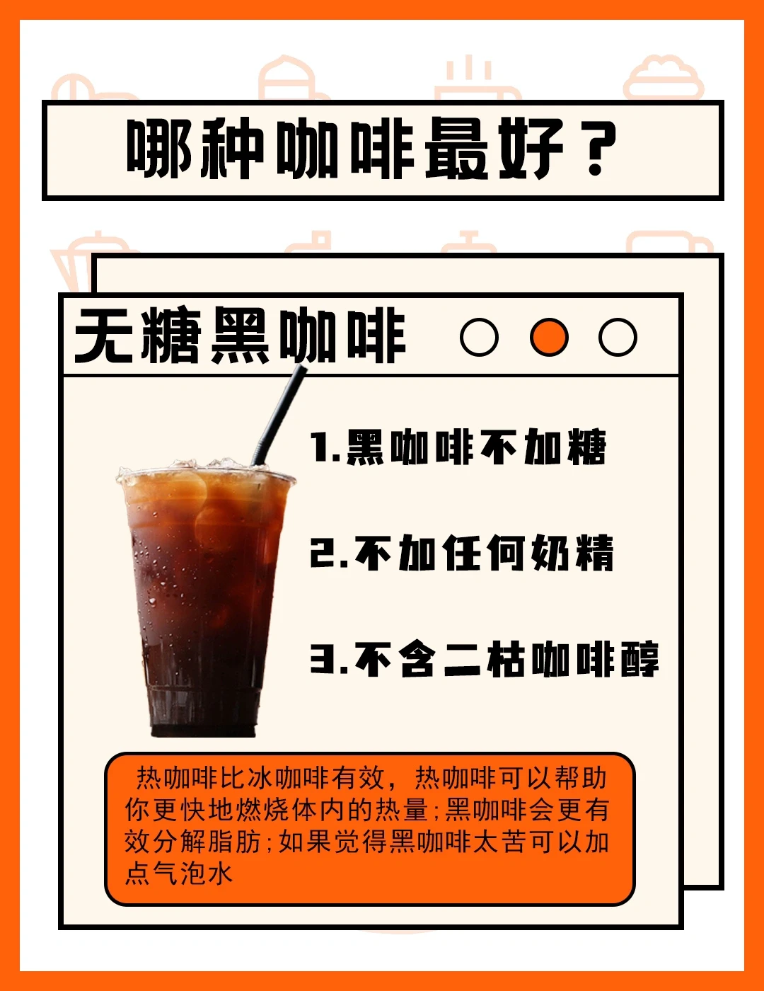 减肥怎么喝咖啡?什么咖啡能减肥?以及其他你想知道的问题 - 另外,一些关于咖啡的新研究表明,适当饮用咖啡可以预防帕金森病、2型糖尿病、肝癌等疾病 - ⭐减重人最关心的咖啡怎么喝更燃脂: - 🔹咖啡为什么可以帮你减肥? 🔹咖啡能预防哪些疾病? 🔹咖啡什么时间段喝最好 🔹咖啡会伤胃吗 🔹咖啡不适合那些人群 🔹常喝咖啡牙齿会变黑吗 🔹选择哪种咖啡最好 - 炎炎夏日即将来临,你确定不用一杯黑咖啡开启活力慢慢的一天吗?