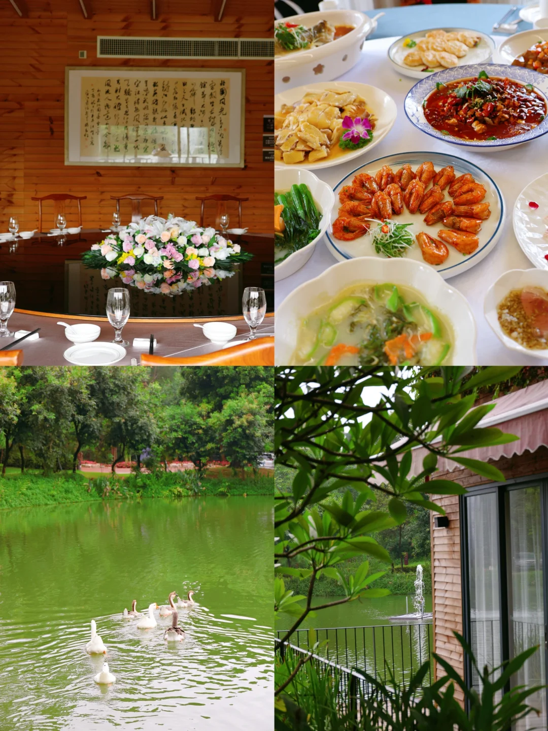 还可以选择花语湖餐厅,主打顺德风味,可以品尝到名厨烹饪的地道农家。