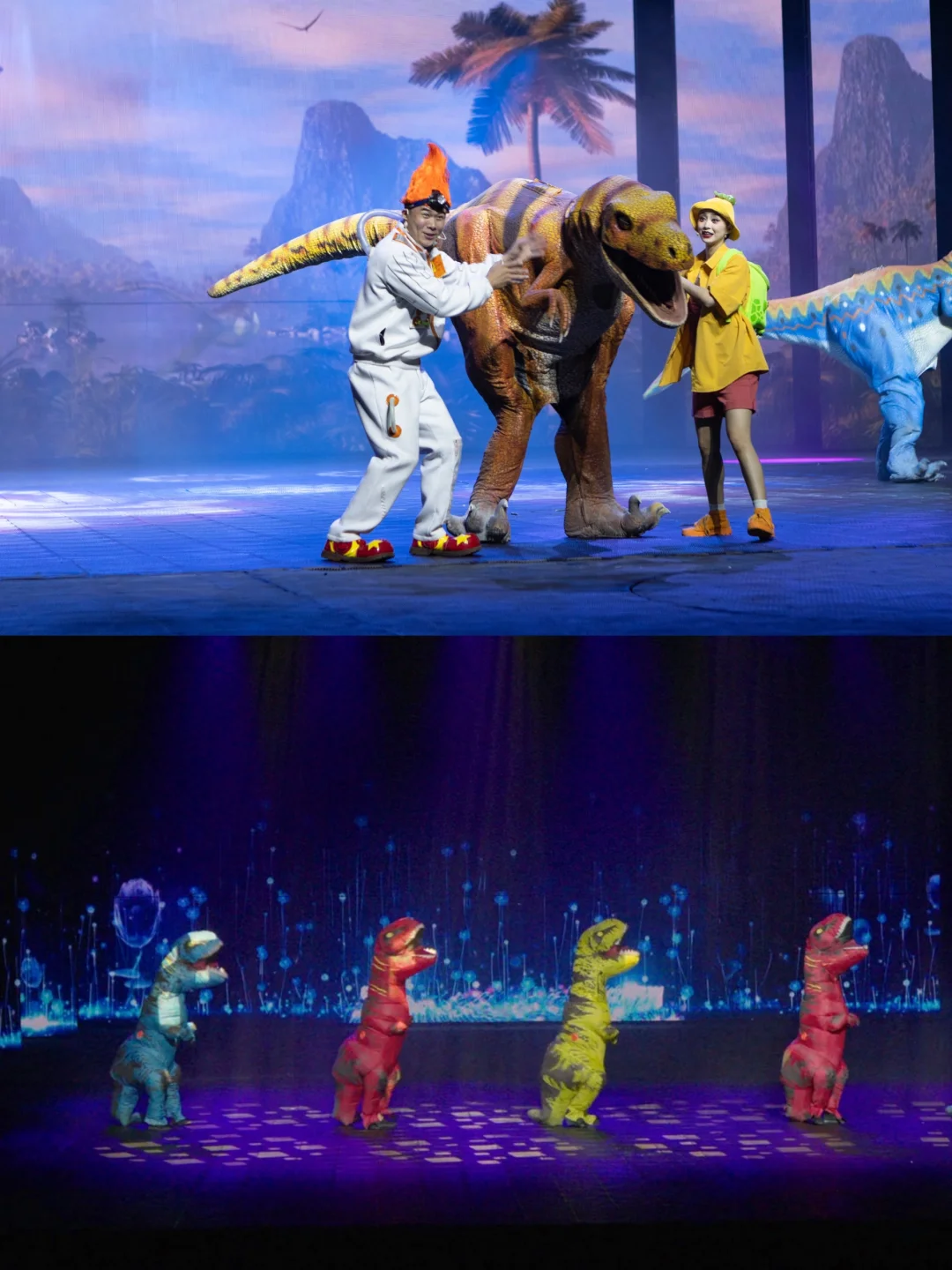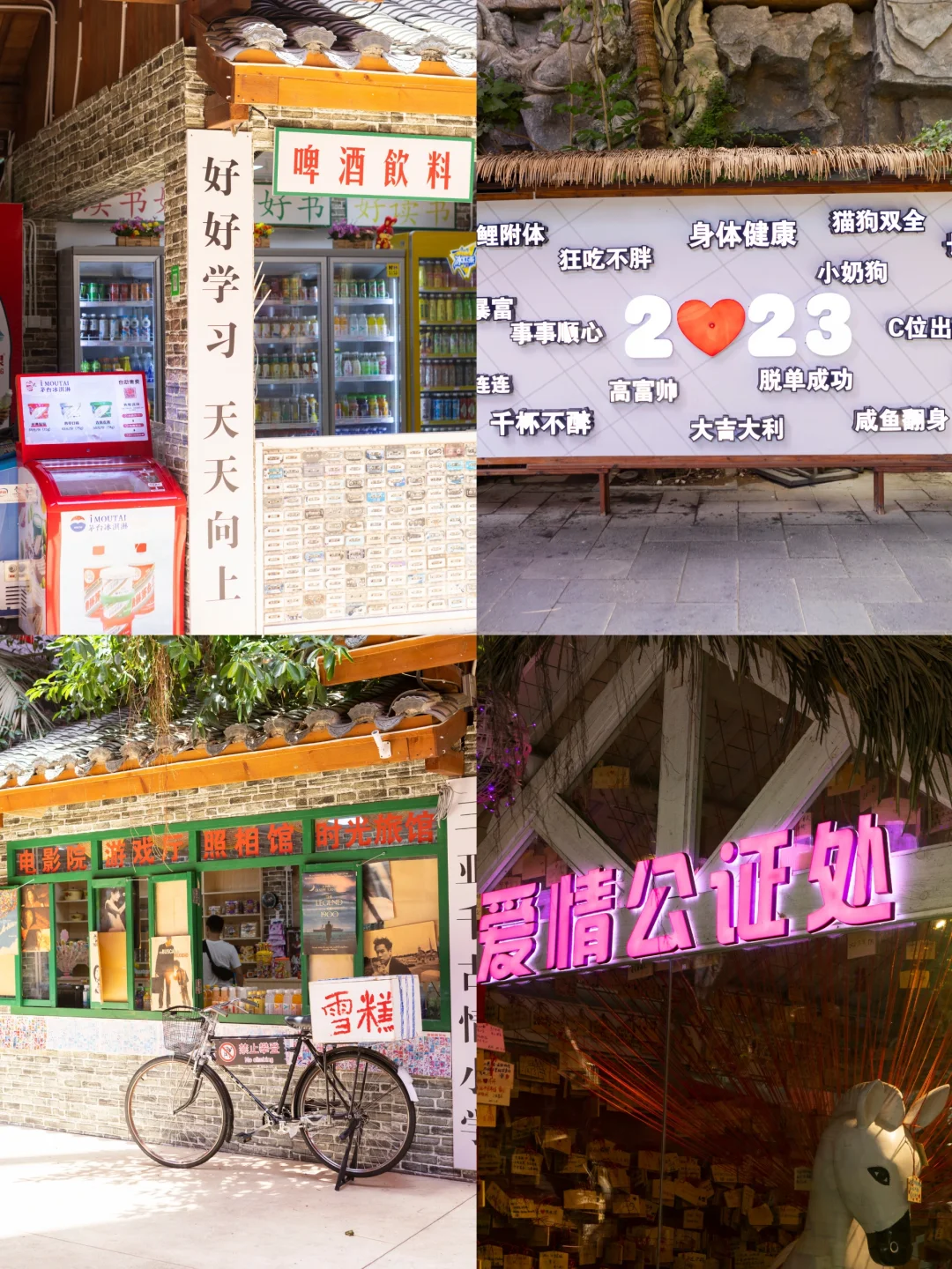 来三亚千古情景区,解锁花样玩法, 真的要花一天时间来慢慢感受这个 黎苗风情古镇里的多巴胺欢乐元素。 .[氛围感R] 【剧场表演】: 景区表演分两种,一种是剧场内,更加正式,比如被认为一生必看的表演《三亚千古情》:从序【落笔洞】开始,【鹿回头】演绎三亚浪漫动人的爱情故事,【冼夫人】有扣人心弦的战斗画面,歌颂的是中国巾帼英雄第一人冼夫人的事迹,【海上丝路】美轮美奂的灯光和舞美演绎海上丝绸之路的美丽,【鉴真东渡】,用惊险刺激的杂技表演烘托鉴真东渡的艰难和惊心动魄,60分钟眼睛都不敢眨一下的视觉盛宴,视觉之美,赞叹文化魅力。 .[氛围感R] 观看小tips:建议买VIP票在中间位置, 中间过道更接近演员,可近距离感受那种舞美。 亲子出游也可以选择观看《WA!恐龙》儿童舞台剧,小朋友更爱看。 [氛围感R] 【街头快闪表演】 这是景区的另外一种表演, 跟游客的互动感会更好, 可以更近距离接触,还有机会跟演员们互动, 更融入这里的文化,得到的快乐感是不一样的。 比如《多巴胺快闪》《黎寨招亲》《扬帆起航》《擒拿盗贼》《花仙布露》《天竺风情》《抖空竹》等等。 .[氛围感R] 【网红打卡】 三亚千古情景区除了不辜负的表演, 还有黎苗风情的古城风景可以看, 从进入园区的崖州古街开始, 就有很多互动和多个主题打卡区, 复古小卖部:千古情广场旁边, 很多复古的小物件和场景 爱情博物馆:爱情街里可以做很多浪漫的小事,比如寄一份未来的信。 .[氛围感R] 【玩乐】 精灵谷,戏水区都适合遛娃, 还有恐怖屋和互动游乐馆也可以找到快乐 现在还有很受欢迎的清明上河图光影展, 街头还有很多非遗文化体验, .[氛围感R] 三亚千古情景区 暑假营业时间:12:00-21:30